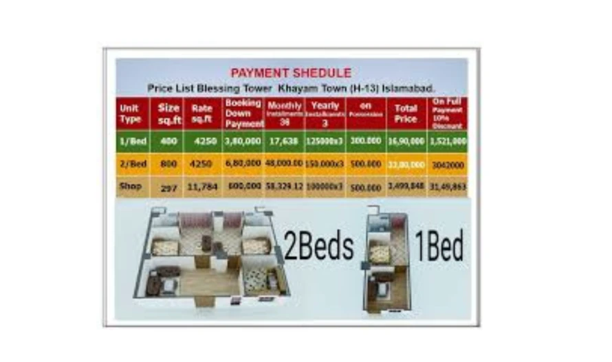 Blessing Tower in Khyam Town (H-13), Islamabad is a premium residential development offering modern lifestyle apartments with stunning views of the Margalla Hills. Ideally located just 500 metres from Kashmir Highway, the tower provides quick access to major road networks, renowned educational institutions, healthcare facilities, and other urban conveniences.