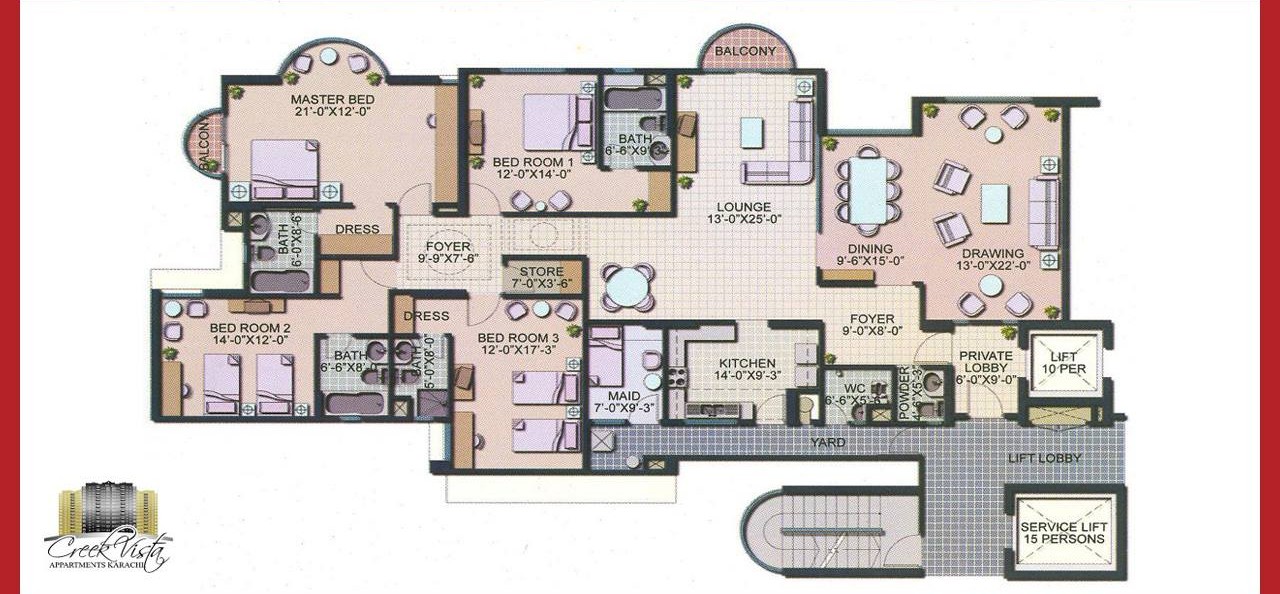 The development comprises twelve 16-floor towers, each containing 56 apartments and 4 penthouses, totaling 720 residential units. Creek Vista is a gated community offering state-of-the-art facilities, security, and services to ensure a worry-free, upscale urban lifestyle.