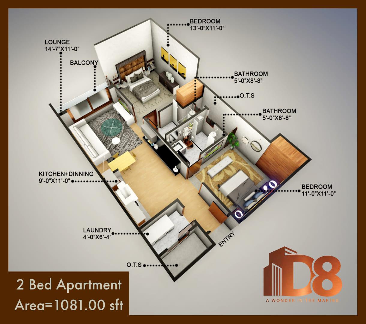 For residents, D8 Heights offers a refined lifestyle with 1, 2, and 3-bedroom luxury apartments, each crafted with attention to detail and enhanced by a separate residential entrance for added privacy. The modern interior and exterior design guarantees a comfortable and aesthetically pleasing living experience.