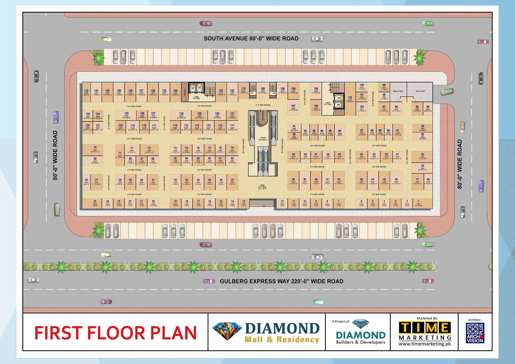 Situated in the prestigious Gulberg Greens, Diamond Mall & Residency is a sophisticated tower combining premium residential apartments with a state-of-the-art shopping mall. Inspired by world-class designs, the project offers residents a unique blend of luxury living and vibrant commercial activity.