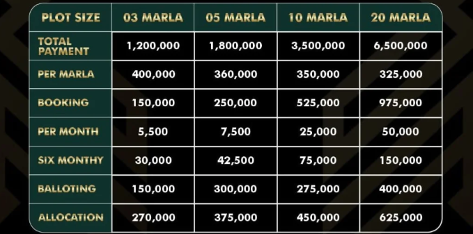 The development features wide roads, green belts, and thoughtfully planned infrastructure, providing residents with access to a mosque, hospital, school, and modern shopping mall. Plots are offered for immediate development, eliminating extra charges, and are available in 3 & 5 Marla residential and 2 & 4 Marla commercial sizes on easy three-year installment plans. Iqbal Garden combines affordability, convenience, and modern amenities to provide a complete living experience.