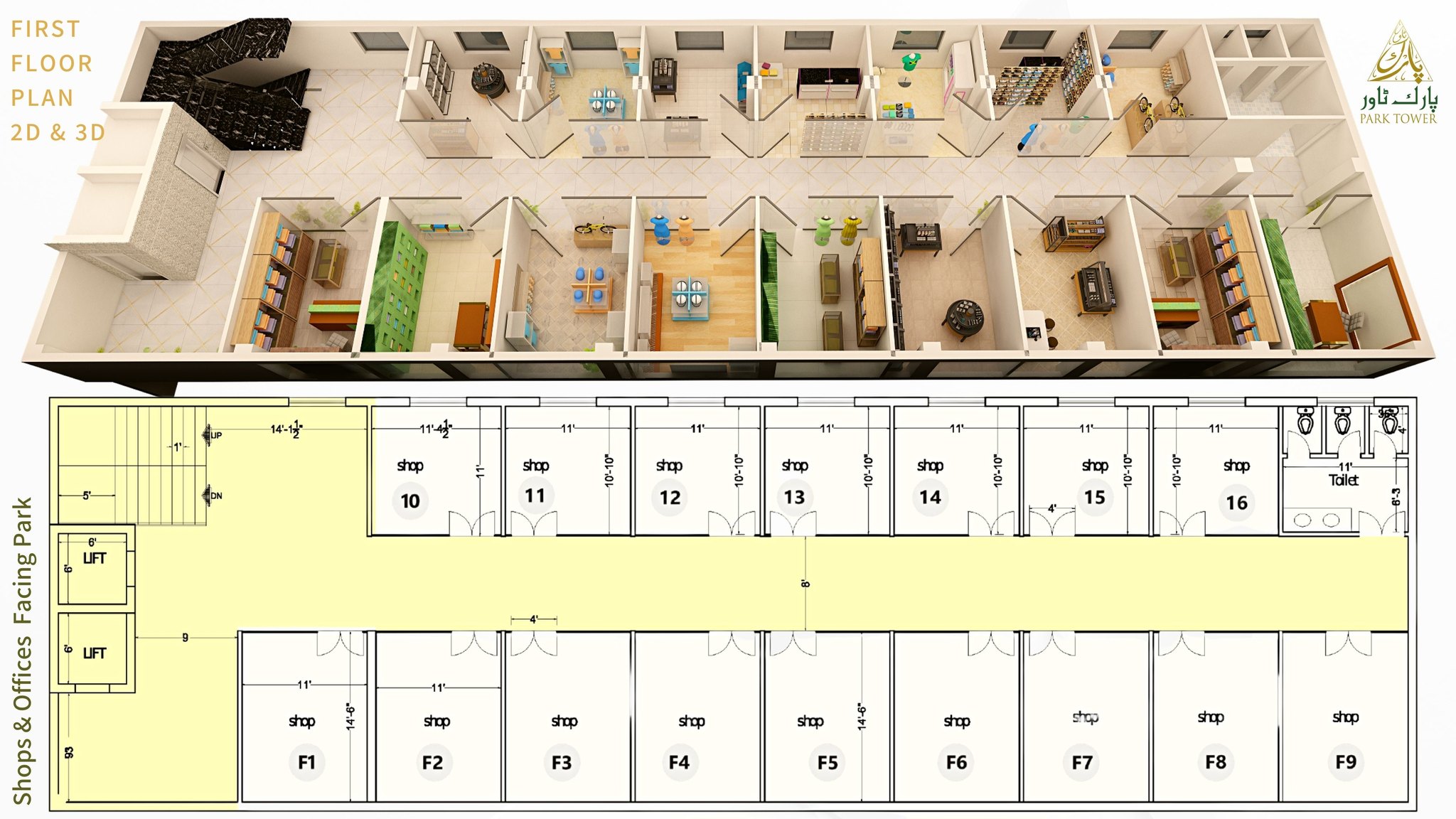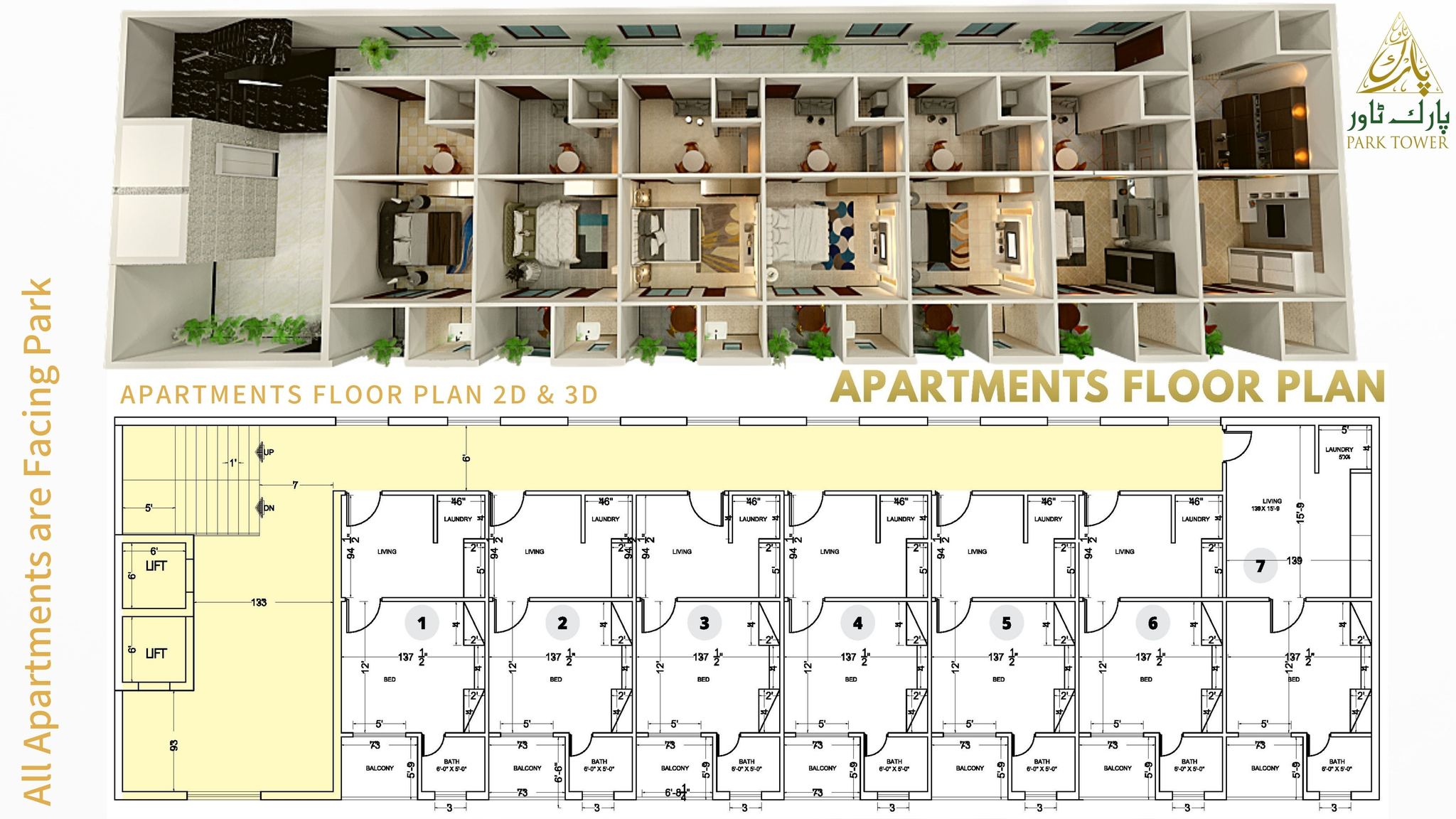 Situated on a 120-foot-wide main road and directly facing a sprawling 44-kanal park, The Park Tower enjoys excellent visibility, high footfall potential, and uninterrupted scenic views. The retail outlets are planned in accordance with international marketing standards, ensuring strong commercial activity and long-term business value. For residents, the project promises a peaceful yet well-connected lifestyle within a secure and vibrant neighborhood.
