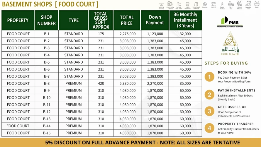 To facilitate genuine buyers and investors, the developers have introduced flexible and easy payment plans across all property types, including apartments, shops, kiosks, food court outlets, and rooftop spaces. With its prime location, thoughtful design, and strong return potential, The Park Tower stands out as a promising investment and lifestyle destination in Lahore.
