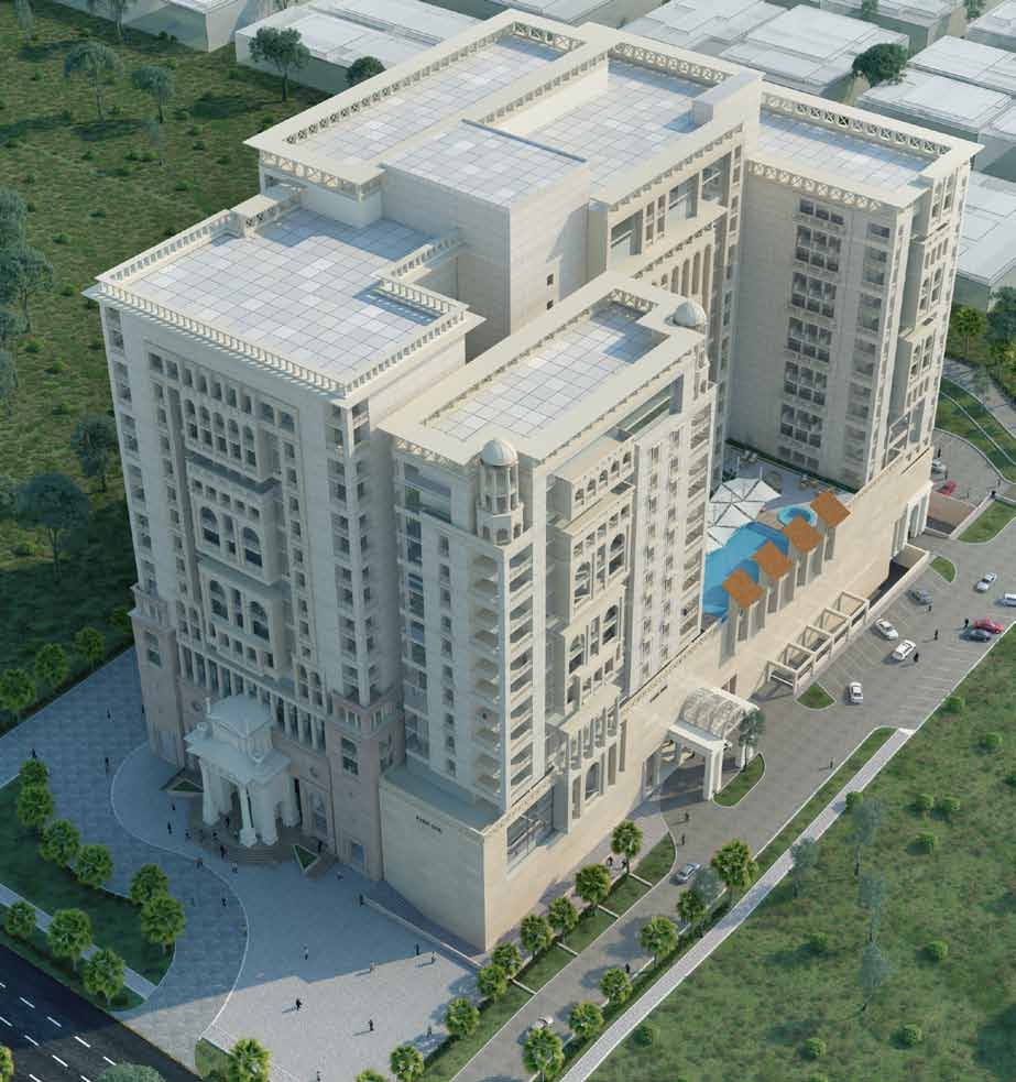 Designed for comfort and modern living, the project features a central landscaped courtyard, high-quality construction, superb flooring, premium glass and tiles, and elegant European-style kitchens. Each apartment includes split AC units, cable TV, an electronic security system, and a covered car parking space, with additional provision for visitor parking.