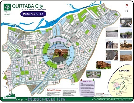 Qurtaba City is a modern revival of the architectural and cultural brilliance of medieval Cordoba, designed with strong inspiration from Islamic teachings of symmetry, harmony, and community living. Spread across more than 7000 kanals, the project offers a serene and faith-inspired lifestyle surrounded by the scenic Potohar Valley and the rivers Sill and Sawan. Its prime location, just 45 minutes from Islamabad and 25 minutes from the Islamabad International Airport, makes it an ideal residential destination away from city noise yet close to essential urban facilities.