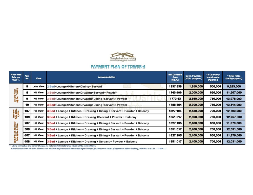 At Saqlain Mushtaq Heights, residents are treated like family, fostering a sense of community and shared quality of life. With its prime location, exceptional design, and premium facilities, investing in these apartments promises high returns and an unmatched standard of living. Interested parties can contact the sales team for transparent guidance, cost breakdowns, and detailed information about available apartments.