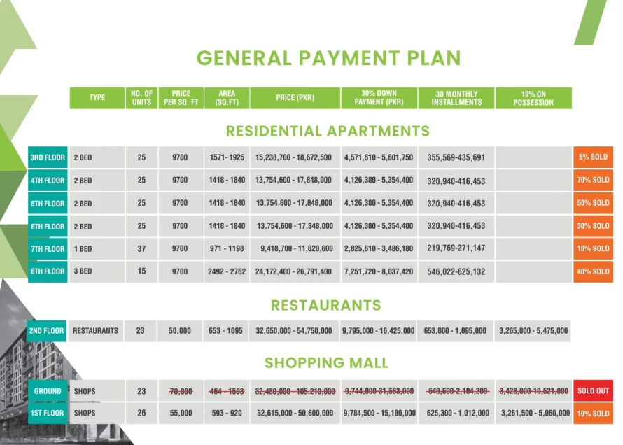 Skypark One, designed by the acclaimed Suhail & Fawad Architects, is a landmark residential and commercial development that redefines luxury living in the heart of Gulberg Greens, Islamabad. Blending modern, classic, and timeless design elements, the project offers an unparalleled lifestyle enhanced by its signature feature — a breathtaking rooftop Skypark located nine storeys high.