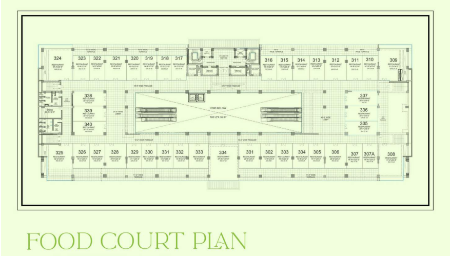 Skypark One also boasts a dynamic three-storey commercial atrium featuring 64 top-tier retail outlets, diverse dining options, and a vibrant 10,000 sq ft food court, creating a complete lifestyle destination within the building.