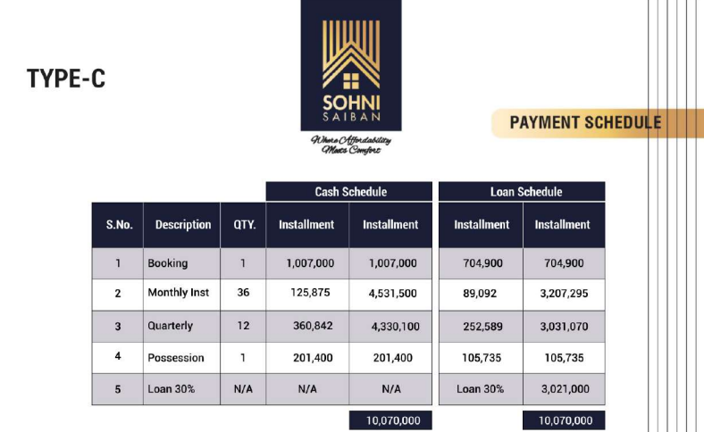 Sohni Saiban also offers affordable home financing through leading Islamic banks, with options under the Naya Pakistan Housing Scheme at a 7% profit rate, flexible installments over 4 years, and up to 20-year financing. With a minimum 20% return guaranteed, the project is an ideal investment for those seeking comfort, security, and financial growth in Karachi.
