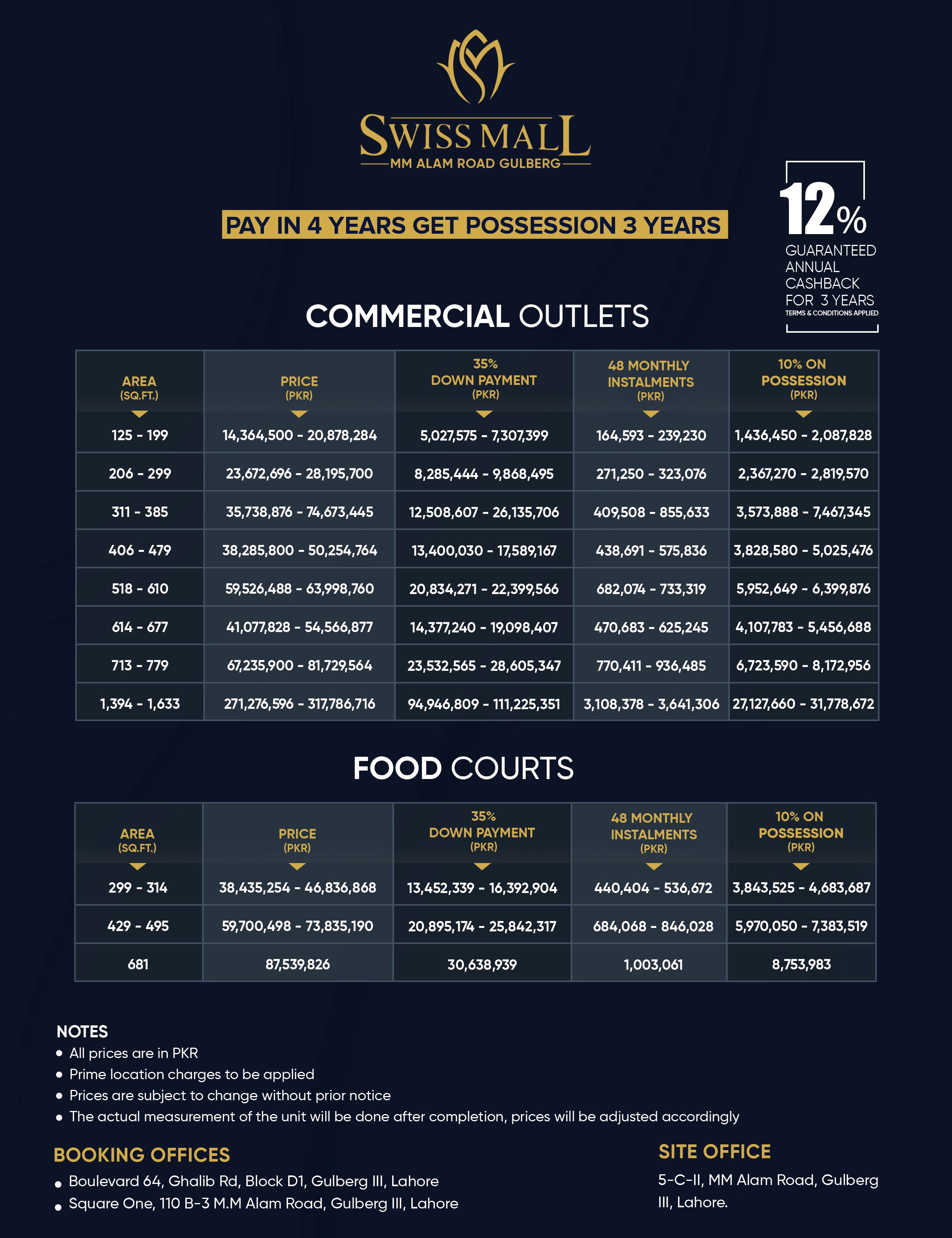 Swiss Mall Gulberg is designed to deliver both lifestyle and financial value: