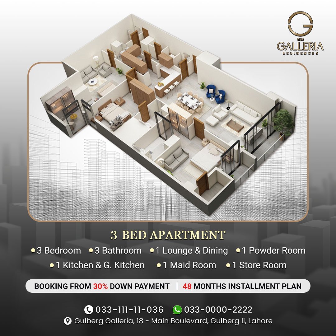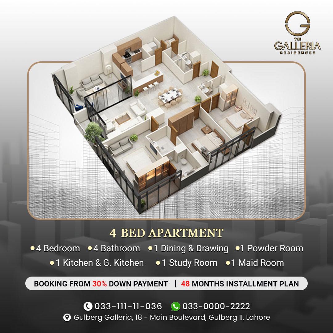 Located in the heart of Gulberg, Lahore’s most sought-after address for upscale living, fine dining, business, and shopping—the project presents an unmatched opportunity for both homebuyers and investors. Its flexible payment plan, prime urban location, and strong annual rental yield make The Galleria Residences a highly lucrative and limited investment opportunity in the city’s real estate landscape.