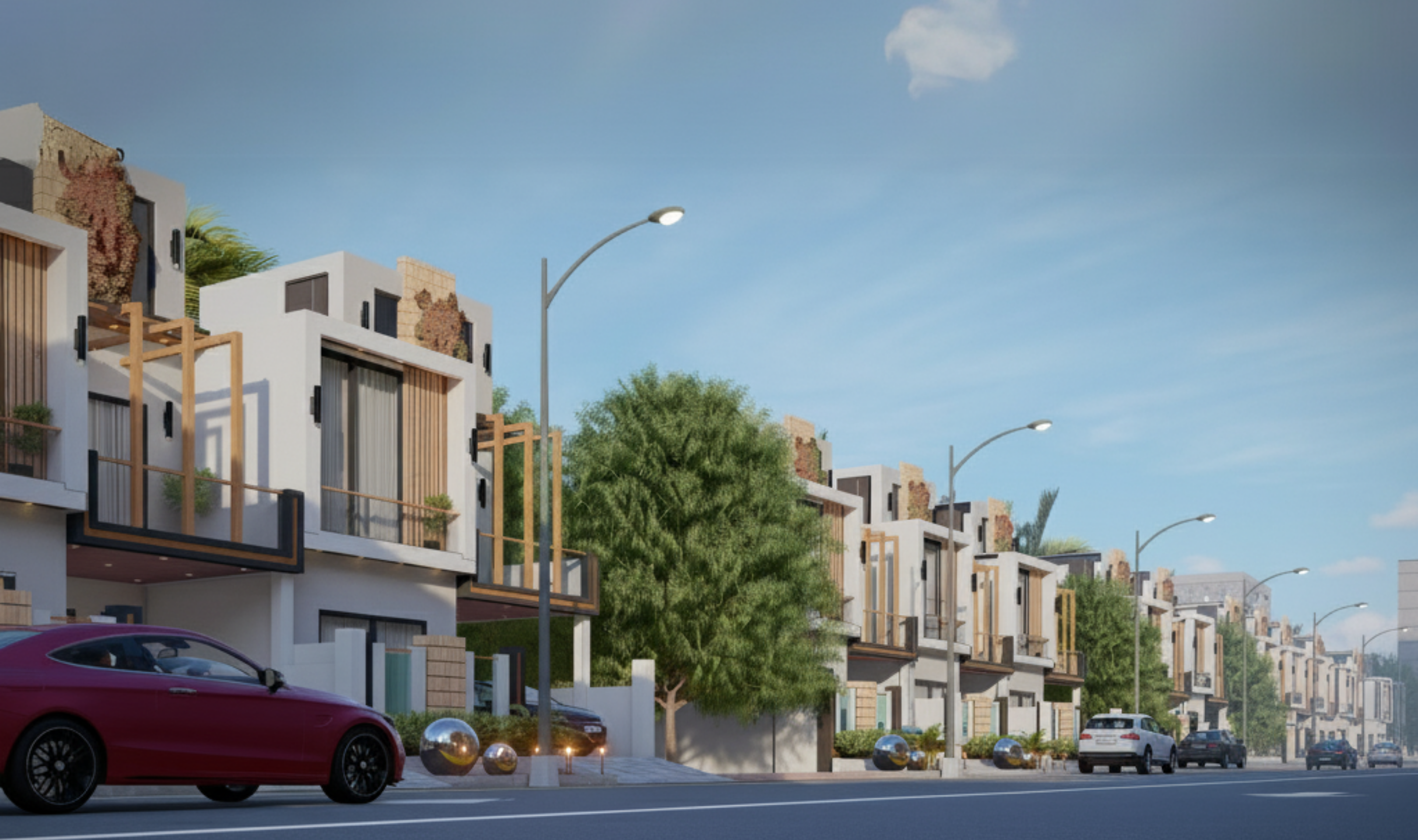Each 5-marla villa features 3 and 4 spacious bedrooms, a modern architectural design, a comfortable lounge, a contemporary kitchen, airy balconies, and ample car parking space. The balconies offer scenic neighborhood views, enhancing the overall living experience and creating a peaceful haven for urban families.