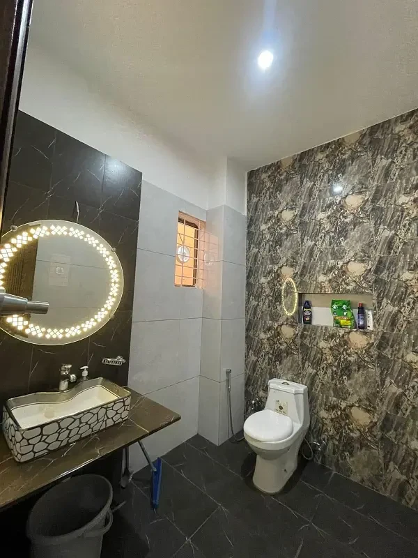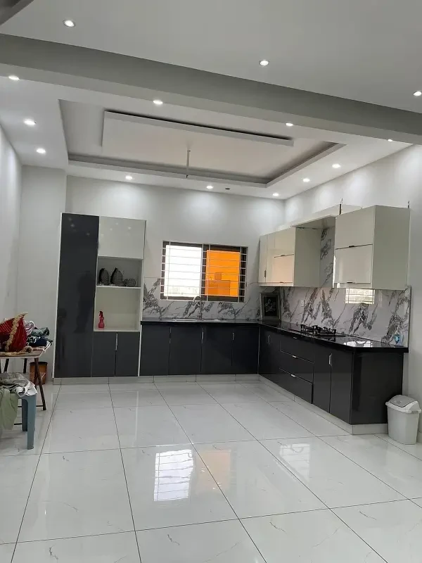 The villa features 5 spacious bedrooms with 5 washrooms, a well-equipped kitchen, a comfortable lounge, a store room, and a servant room. It also includes a terrace, car porch, installed grills for added security, ceiling fans, and a stove, ensuring a complete and move-in-ready living experience.