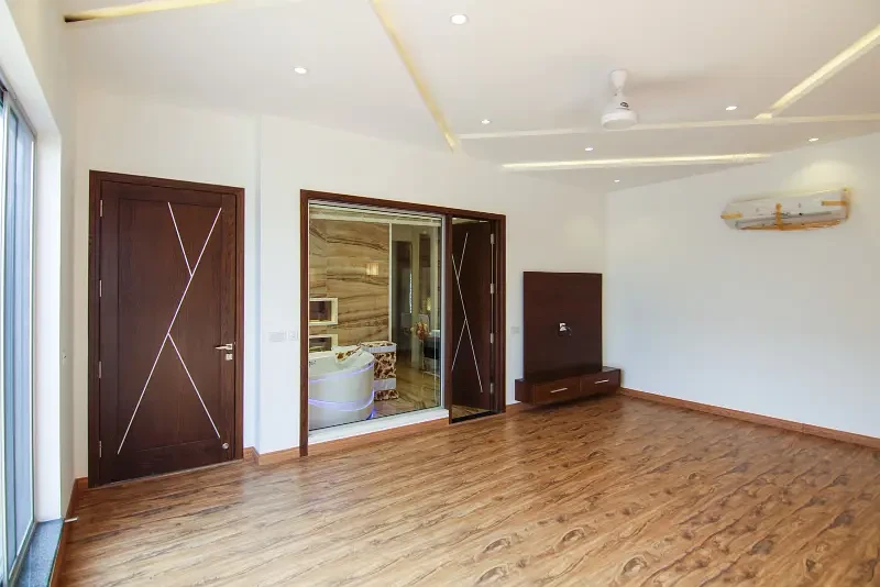 Constructed with attention to detail, the house features tiled and wooden flooring, solid wood doors, and a stylish false ceiling design throughout. The property offers parking space for up to four cars and is situated close to parks, mosques, schools, and the commercial zone, ensuring both convenience and accessibility.
