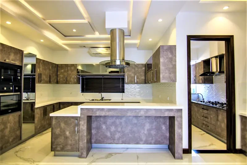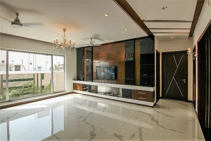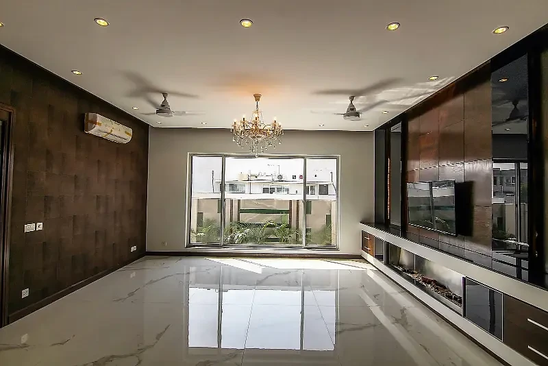 A modern 1 Kanal house is available for rent in DHA Phase 5, ideally located near the park in a prime area. This beautifully designed home offers contemporary living with 5 spacious bedrooms featuring attached baths, a drawing and dining room, two elegant TV lounges, and two fully equipped kitchens. The property also includes two servant quarters and a store room, providing ample space for comfortable living.