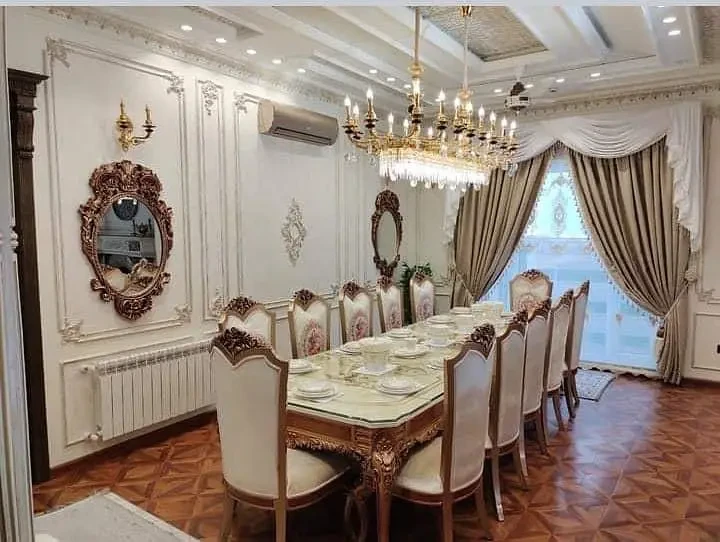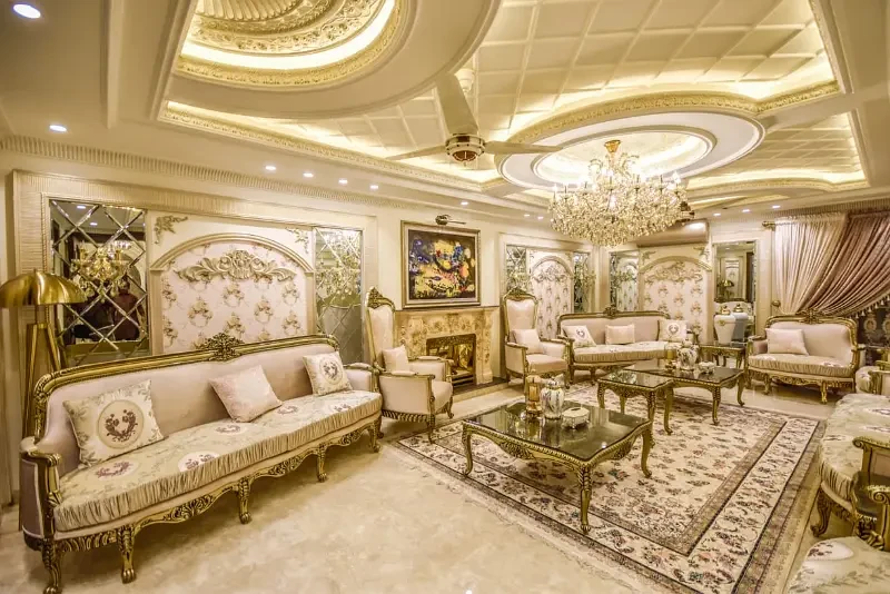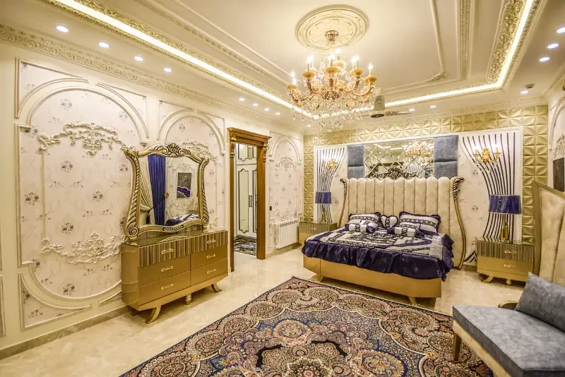 The bungalow includes six spacious master bedrooms with attached baths, each equipped with imported fittings and large wardrobes. The home boasts two modern kitchens with outstanding woodwork, two TV lounges, a drawing and dining room, store room, prayer room, and two servant quarters in the basement. Every corner reflects superior craftsmanship with solid steel gate work, complete marble, tiled, and wooden flooring, and elegant wood detailing throughout.