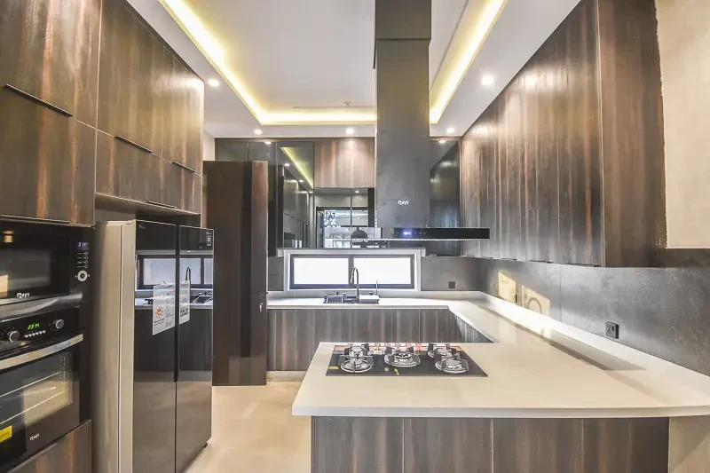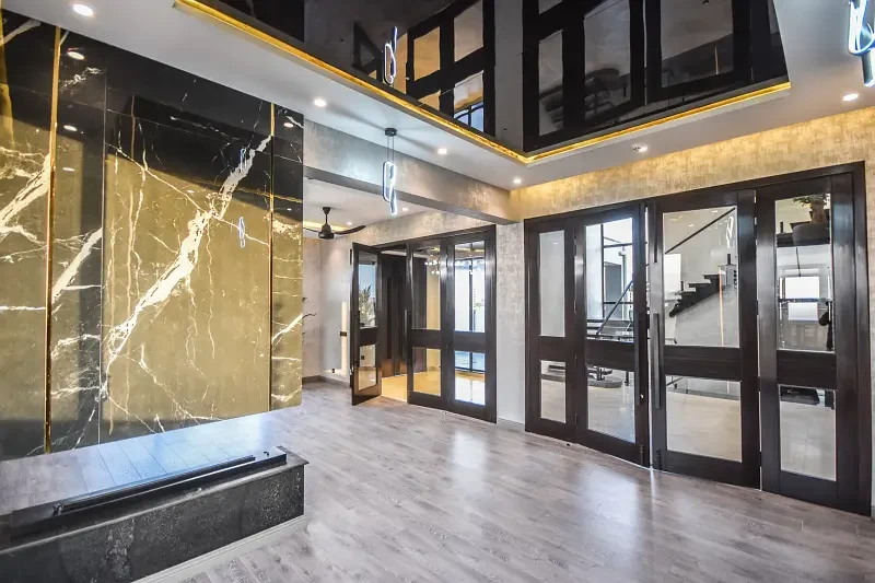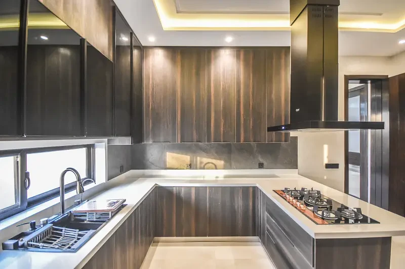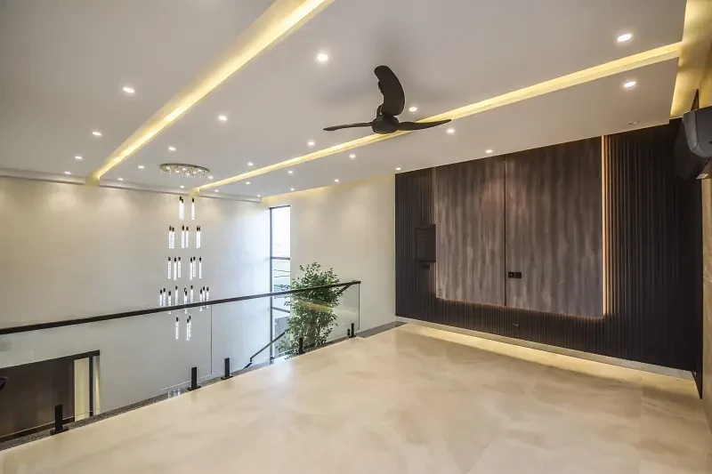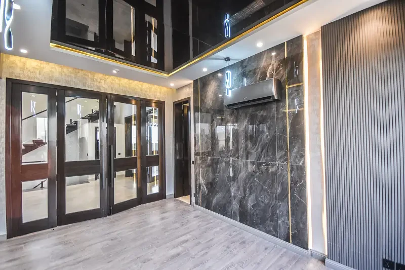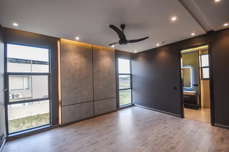 Presenting a One Kanal brand new luxury ultra-modern bungalow for sale in the prime location of DHA Lahore, near the park, mosque, and commercial market. This beautifully designed home features a full basement, six master bedrooms with attached baths, two kitchens, two TV lounges, a drawing and dining room, prayer room, store room, and two servant quarters.
