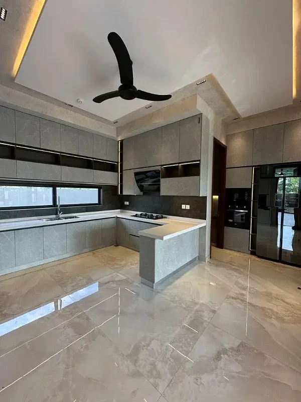 This beautifully designed luxury bungalow offers the perfect combination of comfort, style, and functionality in a prime location near the park, mosque, and commercial area. The home features five master-size bedrooms with attached baths, all equipped with imported fittings and spacious wardrobes. The layout includes two modern kitchens with elegant woodwork, two TV lounges, a drawing and dining room, store room, prayer room, and two servant quarters in the basement, providing ample space for the entire family.