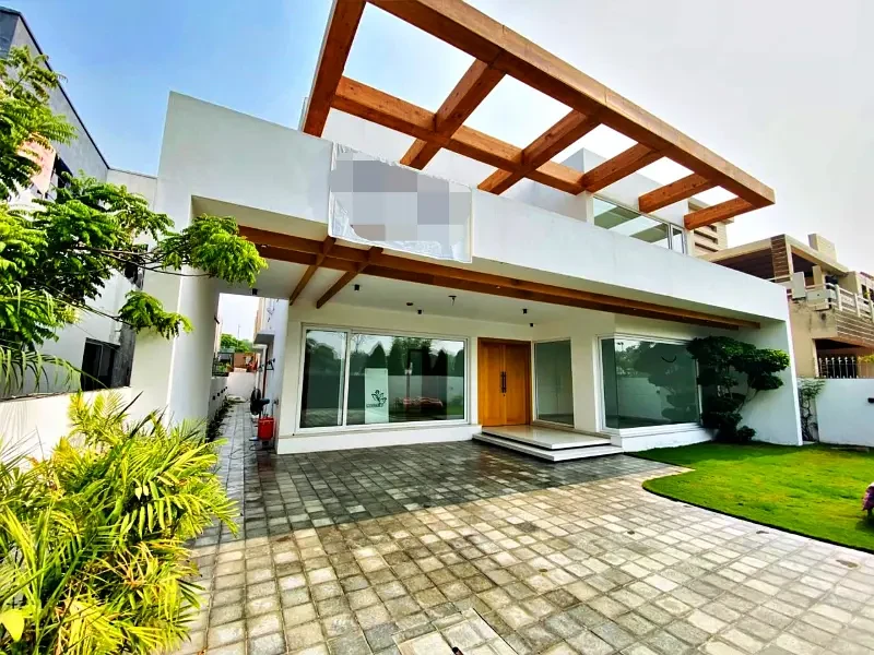 A beautifully constructed double-story residence spanning 5,000 sq. ft., this home offers 5 master bedrooms with attached baths, each fitted with imported fixtures and Spanish tiles. The property features two spacious TV lounges, two modern kitchens, and a large parking area, making it ideal for comfortable family living. Designed with attention to detail, it includes complete marble, tile, and wooden flooring, solid steelwork in gates and cabinets, and a stylish fall ceiling throughout.