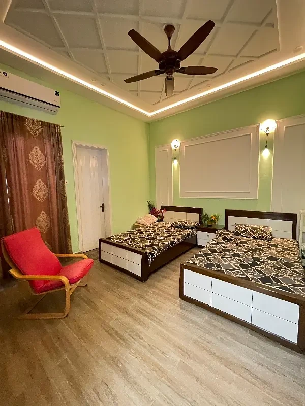 A beautifully designed 2-bed fully furnished farmhouse is available for daily rent on Bosan Road, Multan. Spanning across 2 Kanal, this farmhouse offers a perfect blend of comfort and luxury. It features two spacious bedrooms with attached bathrooms, a stylish drawing and dining room, and a lush green garden for relaxation. The property also includes a private swimming pool, making it ideal for families or groups looking to enjoy a peaceful getaway. Electricity charges are included in the rent of Rs. 35,000 per day, providing a convenient and hassle-free stay experience.
