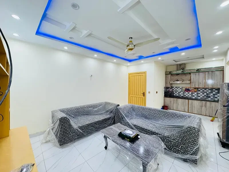 A beautifully furnished double bed flat is available for rent in Citi Housing Society, Gujranwala, at a rate of Rs. 6,000 per day. This spacious 4 Marla flat, available exclusively for families, offers two large bedrooms with attached bathrooms, a modern open kitchen with ample space, and a comfortable living room with a cozy sofa sitting area — perfect for relaxation and entertainment.