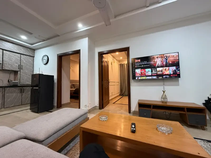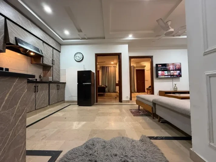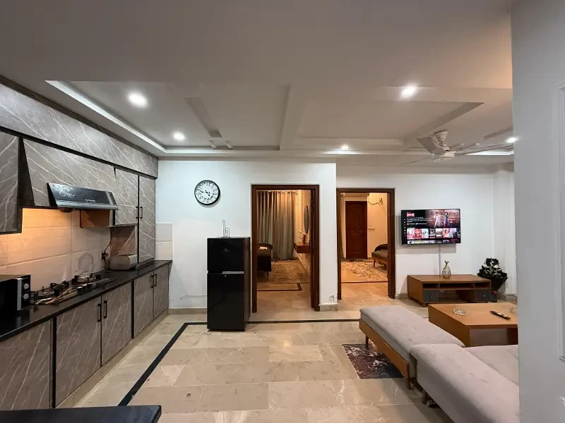 This fully furnished apartment offers a luxurious and comfortable lifestyle in a prime Islamabad location. It features stylish interiors and well-planned spaces for relaxation.