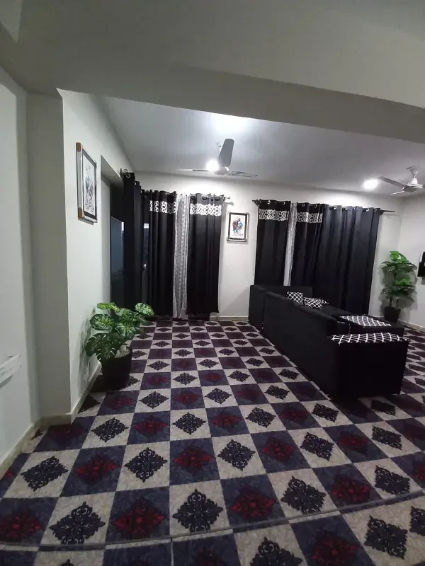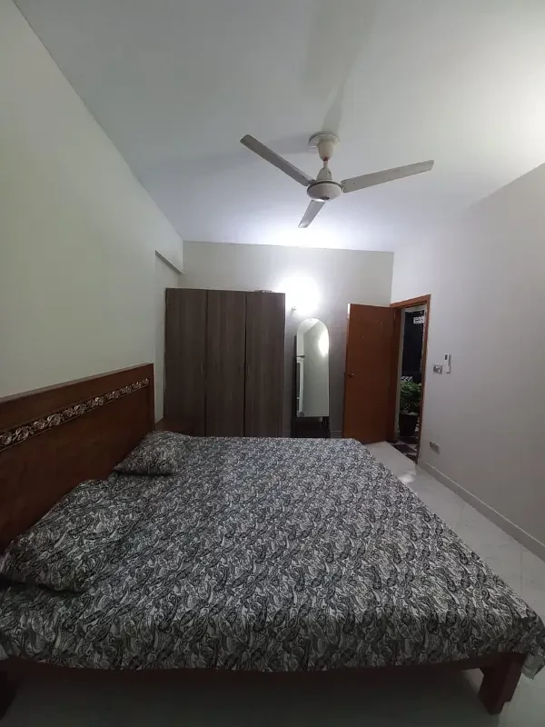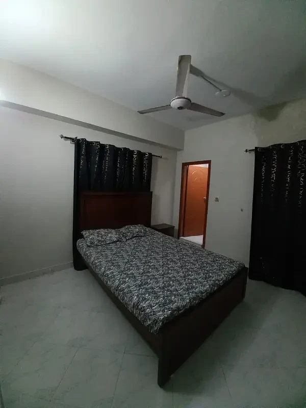 A fully furnished 2-bedroom flat is available for rent in E-11/2, Islamabad, near Medical Society. The flat features 2 bedrooms with attached bathrooms, a TV lounge, kitchen, AC, freezer, Wi-Fi, TV screen, and microwave. The building offers lift access and car parking for residents.