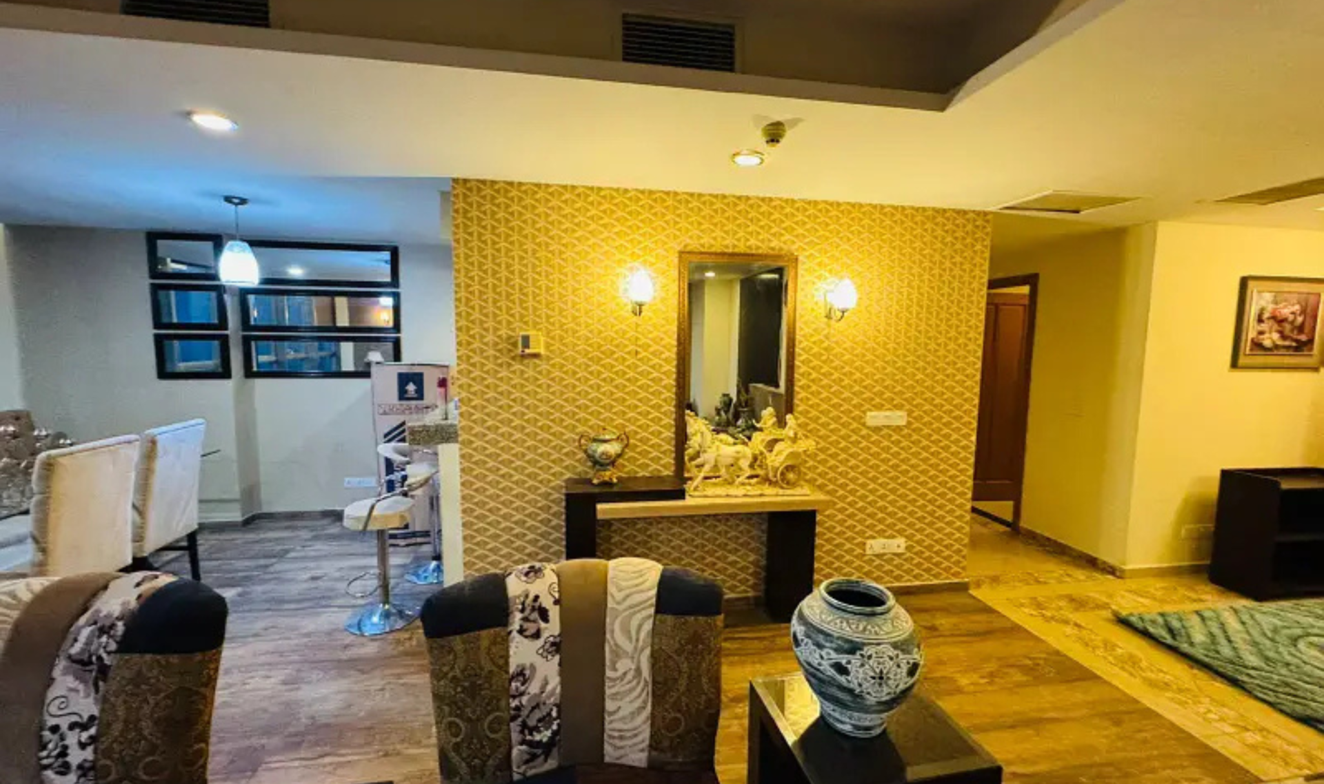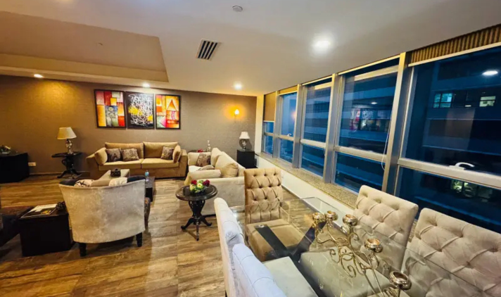 This exclusive apartment features 3 spacious bedrooms with 4 modern bathrooms, along with a drawing and dining area, TV lounge, kitchen, and store room. Fully furnished with quality interiors, it offers a comfortable and high-end living experience suitable for both local and foreign residents.