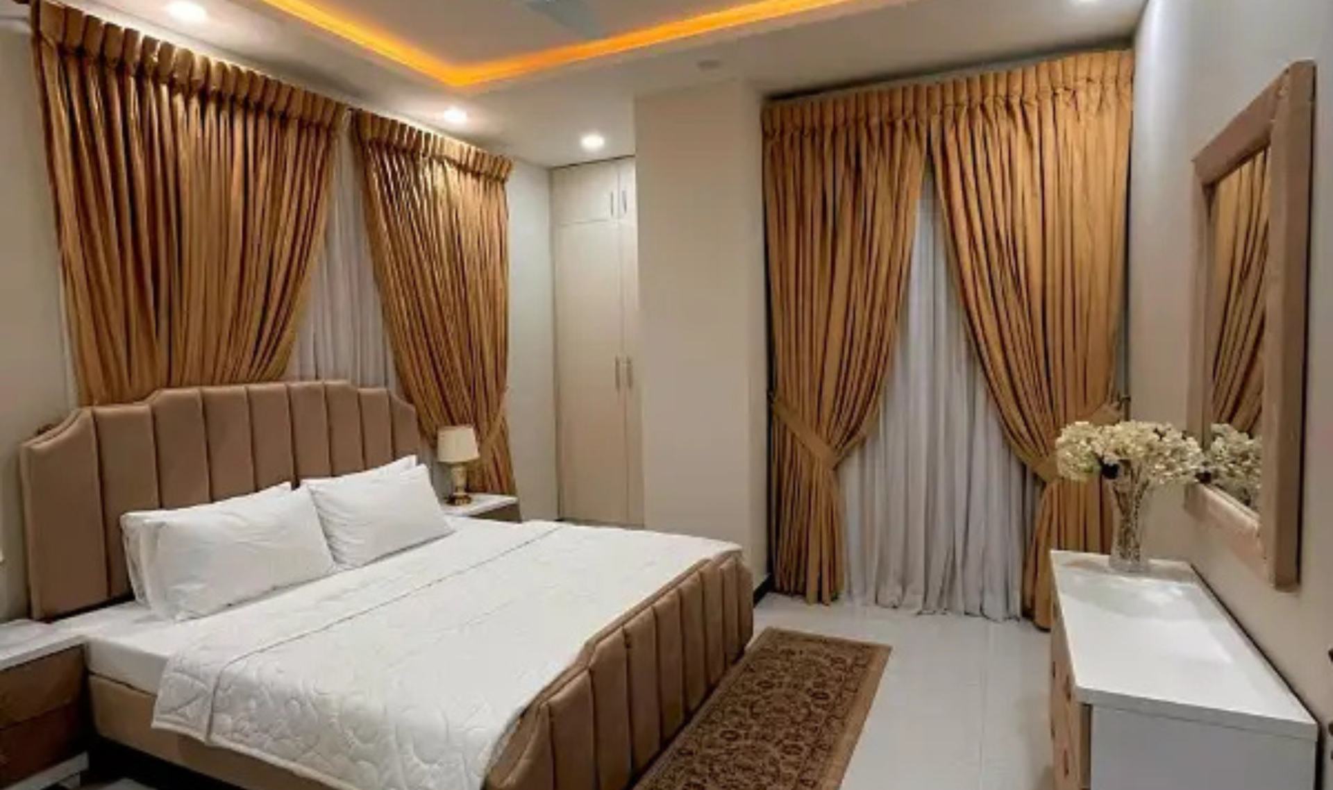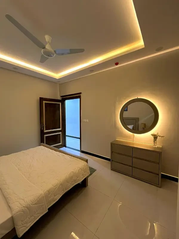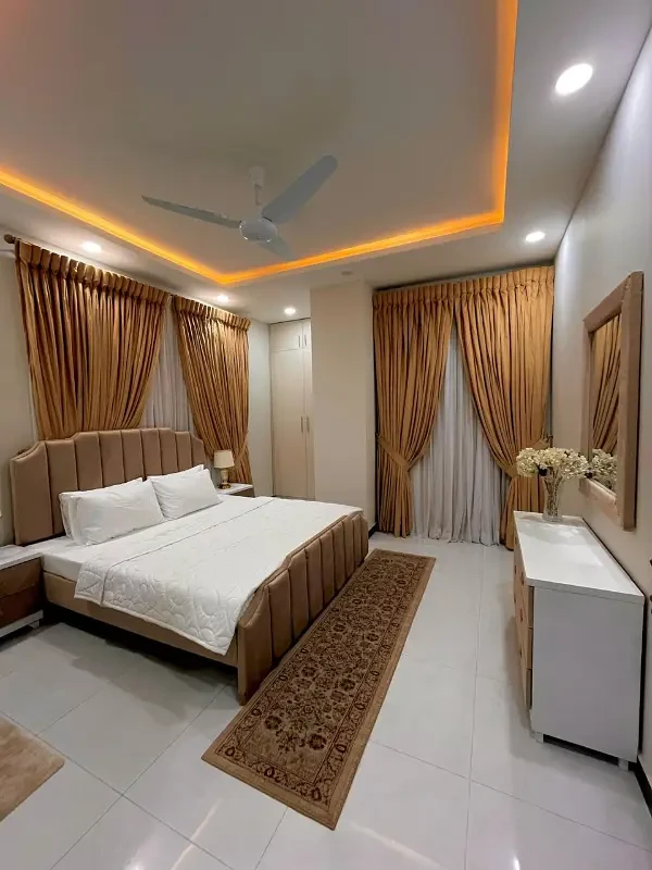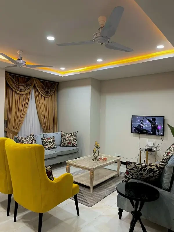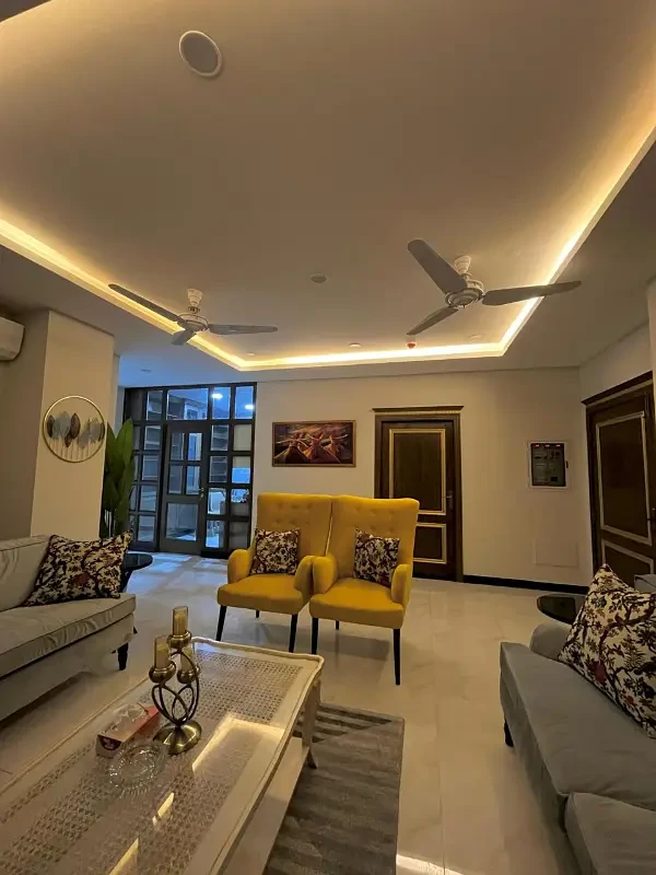 A beautifully designed 3-bed fully furnished luxury apartment is available for rent in G-11, Islamabad. This spacious apartment spans 1,200 square feet and features 3 bedrooms with attached 3 bathrooms, a modern kitchen, and an elegant living area.