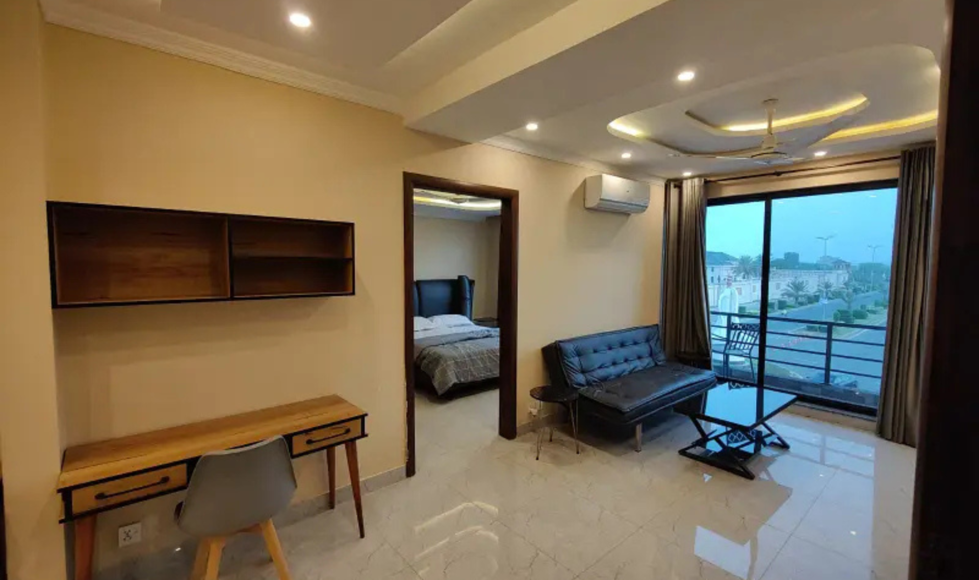 This 1-bedroom apartment in Bahria Town Sector E Lahore offers a comfortable and convenient living option. The apartment includes a bedroom, washroom, TV lounge, and kitchen, providing a simple and functional layout suitable for individuals or small families.