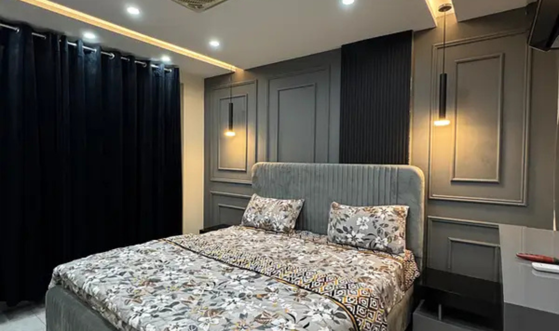A modern and fully furnished 1-bedroom apartment is available for rent in Bahria Town, Lahore, at Rs 8,500 per month. This stylish apartment offers a comfortable and convenient living space, ideal for short or extended stays, whether for work, vacation, or a quick getaway. The unit features a cozy bedroom with queen-sized bed, fresh linens, and ample closet space, a living room with a sofa and smart TV, a fully equipped kitchen with all essentials, and a private bathroom with fresh towels and toiletries.