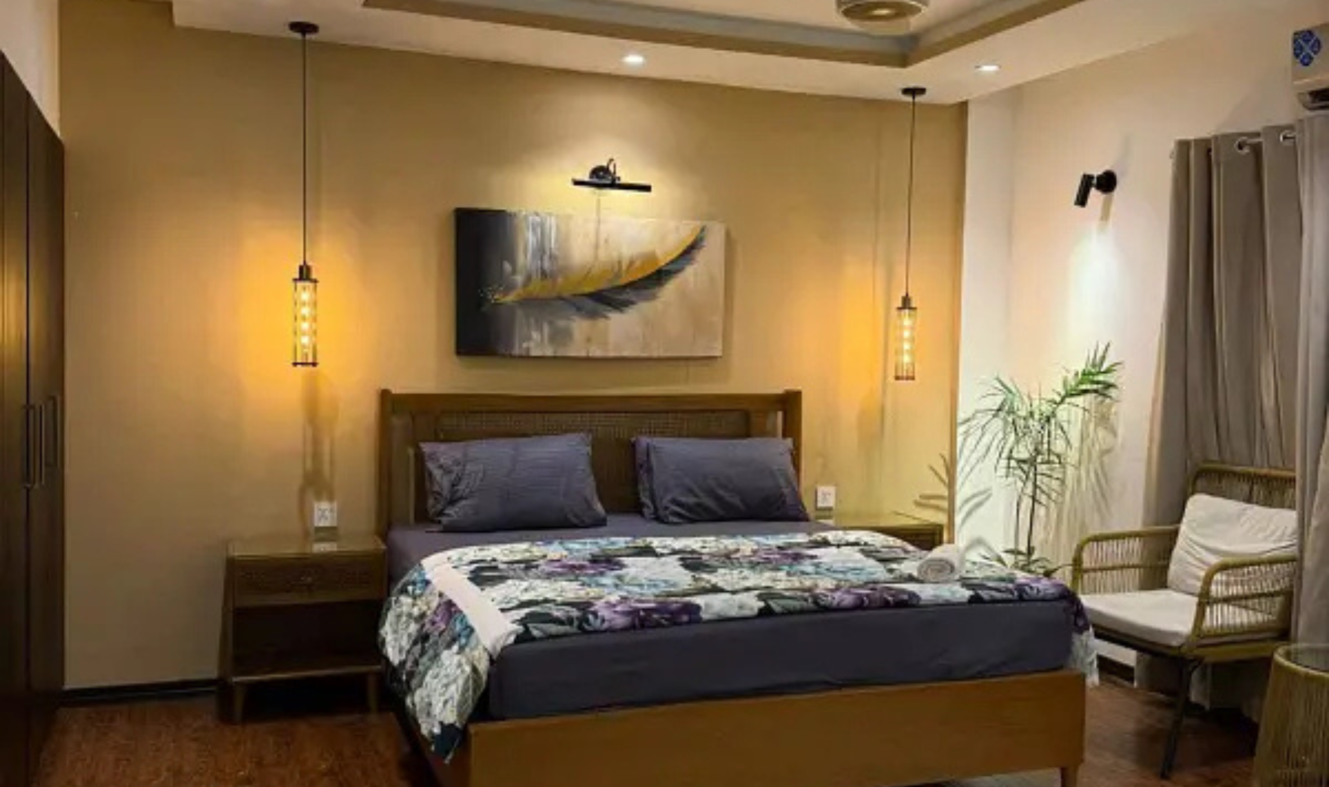 Experience premium comfort in this super luxury AC furnished apartment located in Bahria Town, Lahore. Designed for both short and long stays, it offers a peaceful, clean, and fully private environment with modern amenities to ensure a relaxing experience.