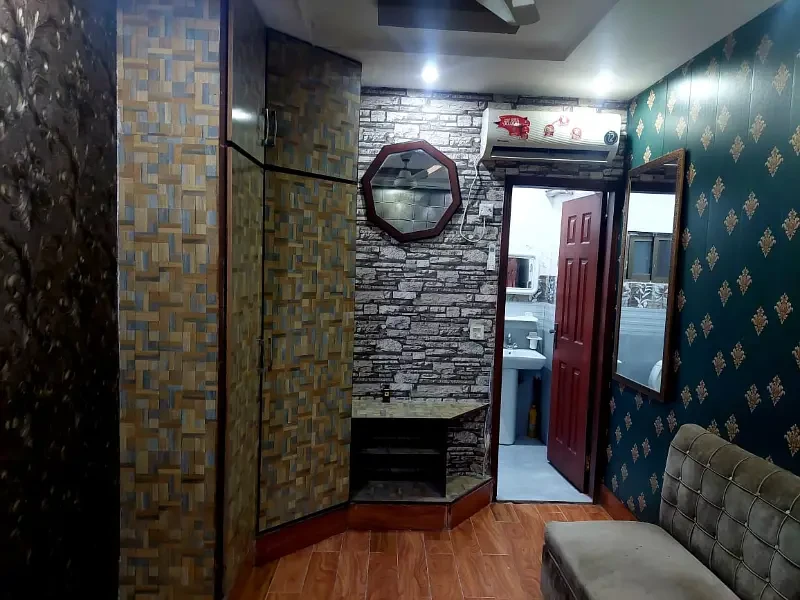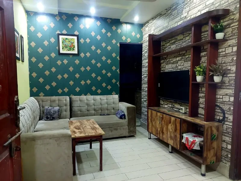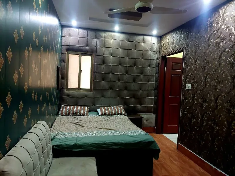 A 1 BHK fully furnished luxury flat is available for rent in Block H-3, Johar Town Phase 2, Lahore, near Emporium Mall. Located in Amman Plaza on the 3rd floor, this 450 sq. ft. flat features 1 bedroom, 1 bathroom, a lounge, and an open kitchen.