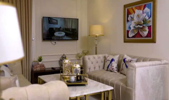 This luxury 1-bedroom furnished apartment offers a stylish and comfortable living space with quality furniture and modern design. It includes a well-planned bedroom, attached bathroom, and a cozy living area, making it perfect for a hassle-free lifestyle.