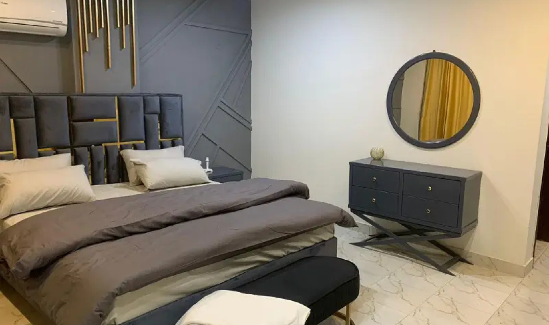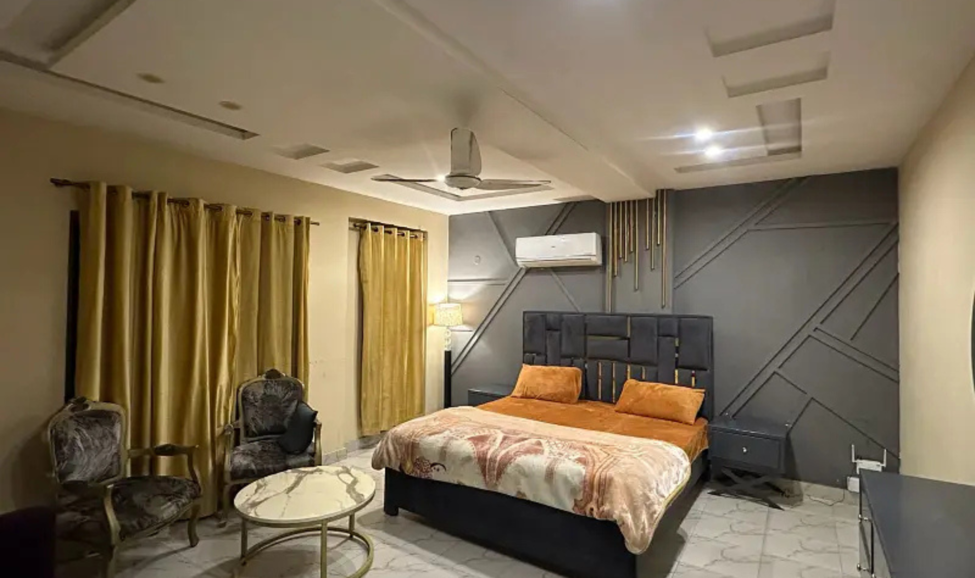 This luxury furnished apartment is designed for comfortable short stays, offering a modern VIP setup with stylish interiors and complete household essentials. It is ideal for families and couples looking for a convenient and relaxing environment.