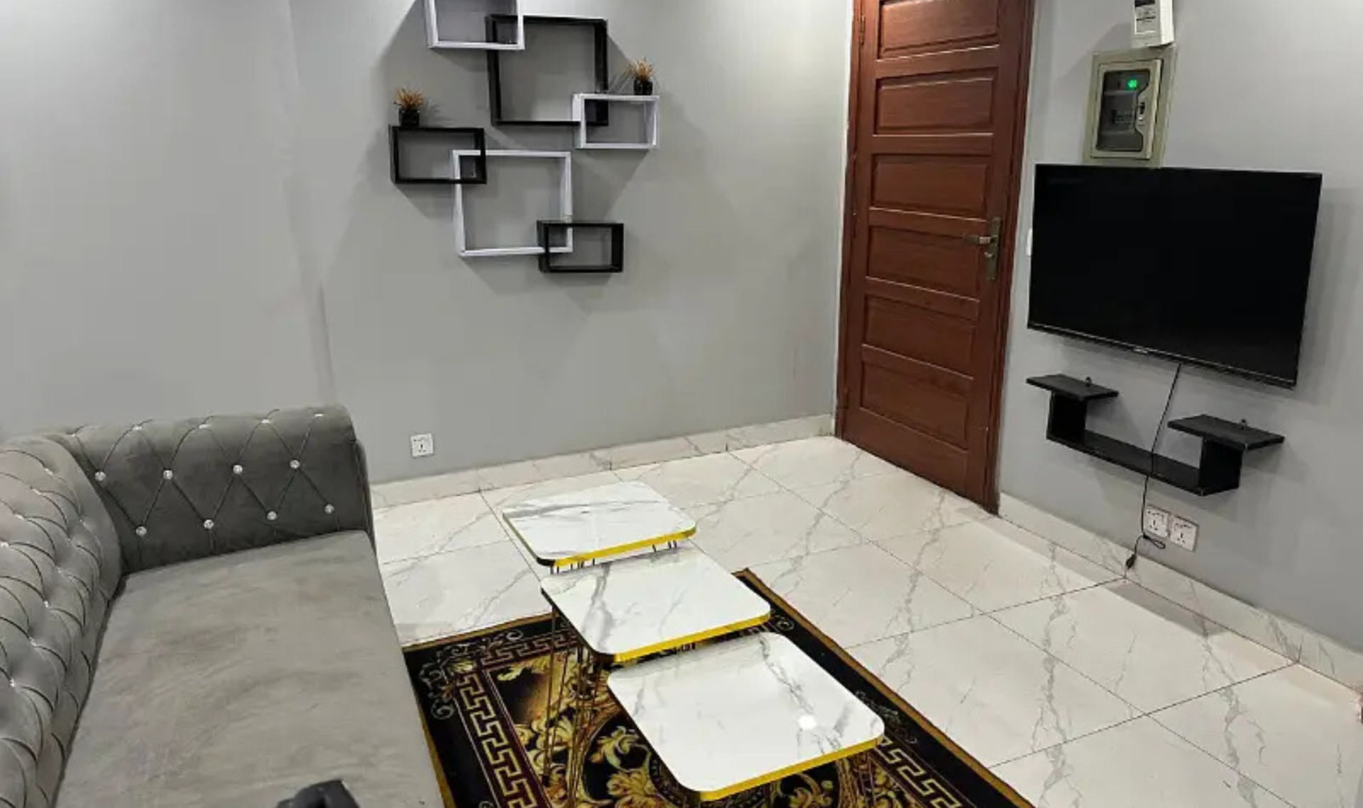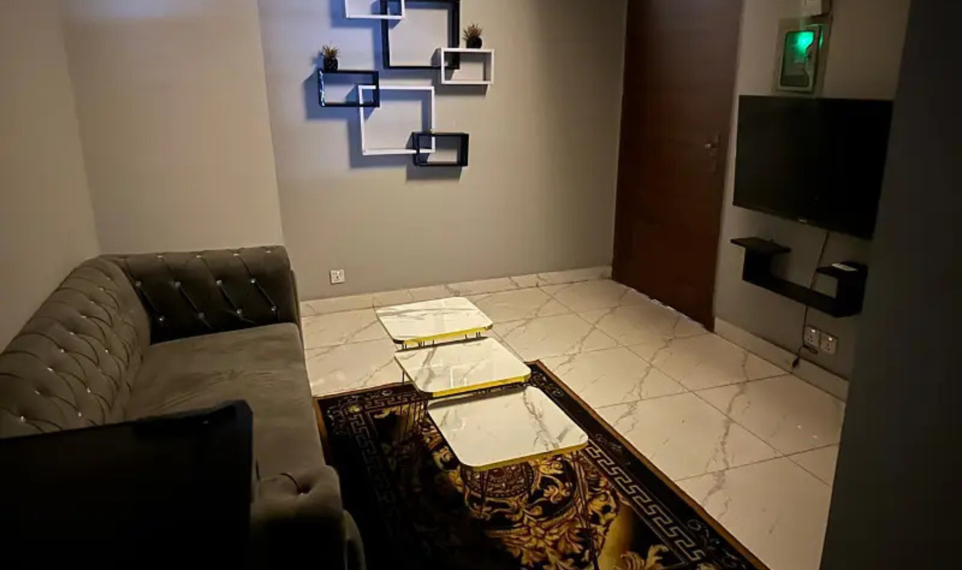 This modern luxury apartment offers a comfortable and stylish living space, featuring a VIP bedroom with attached bathroom, air-conditioning, smart LED TV, 7-seater sofa set, and a fully equipped kitchen with microwave, stove with hood, and fridge. Perfect for a cozy and convenient stay.