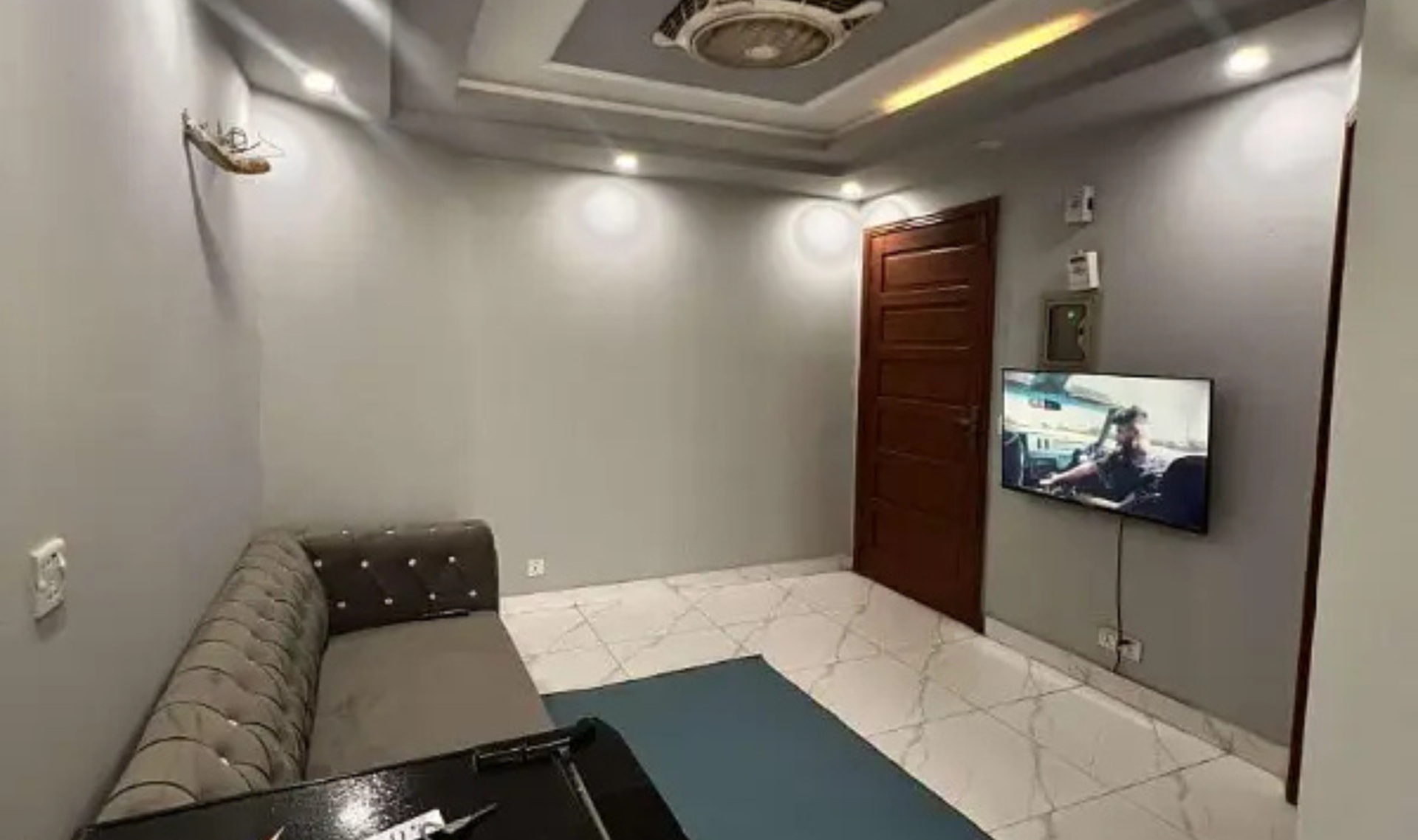 The building provides round-the-clock facilities including security, electricity, internet, and free parking. Suitable for short-term or long-term rentals, with prices starting at 3,500 PKR for a few hours and 6,500 PKR for a full day.