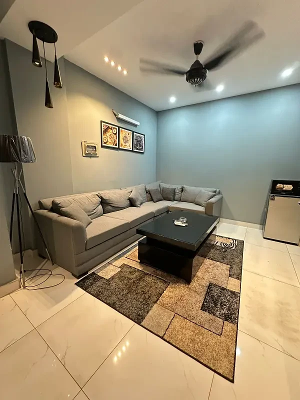 A fully furnished 1-bedroom apartment is available for short-term rent (8–9 hours) of 4000 RS in Iqbal Block, Bahria Town, Lahore, ideal for families and couples. The apartment includes 1 bedroom with attached bathroom, VIP TV lounge, and kitchen.