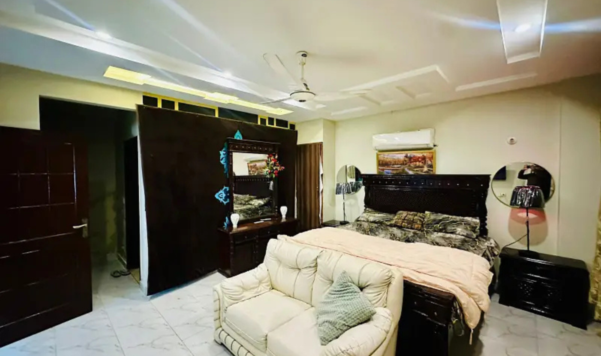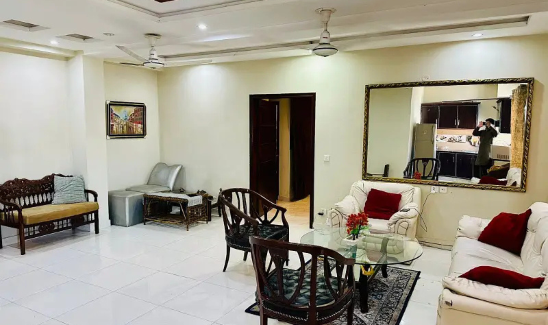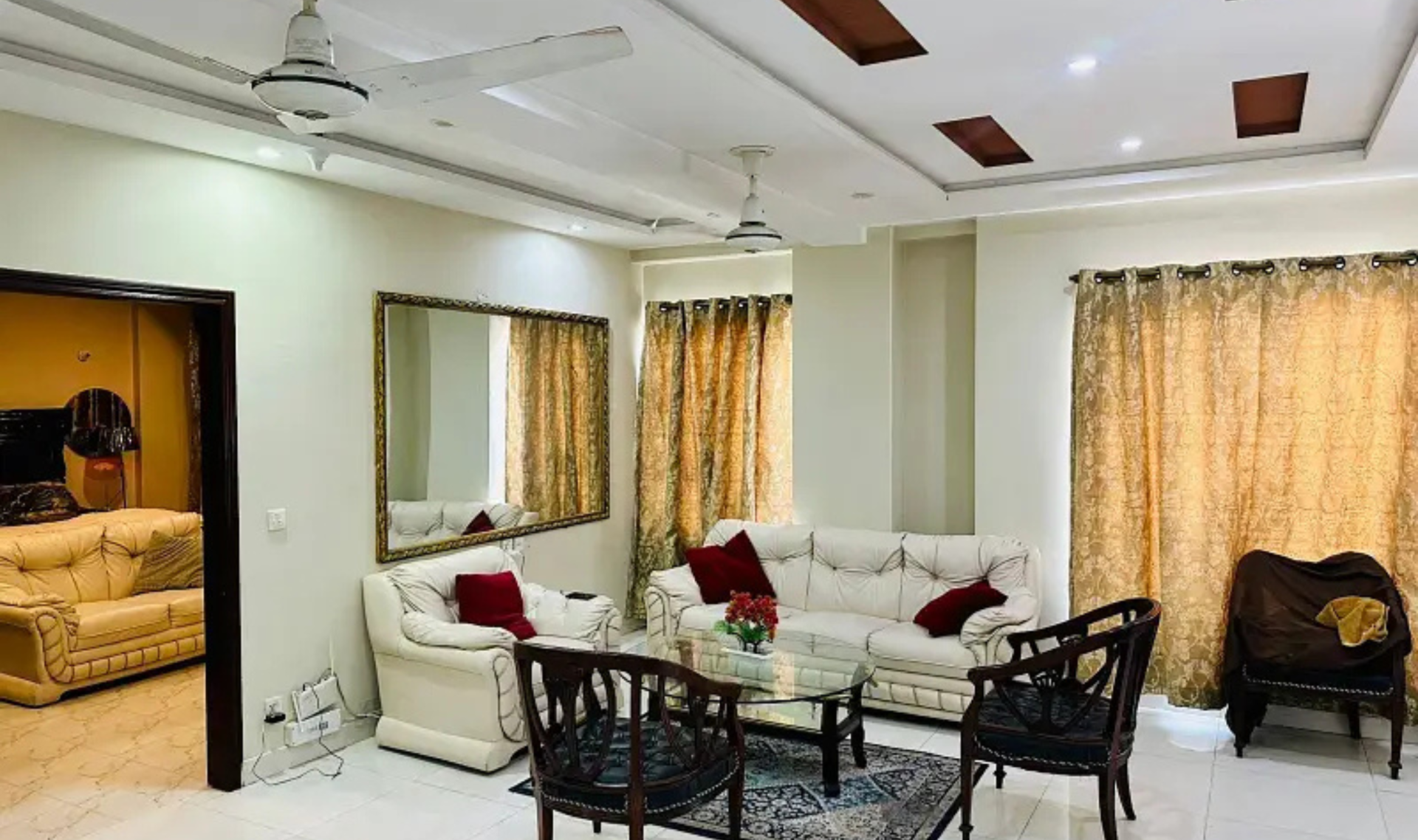 This luxury furnished apartment offers a comfortable and stylish short-term living experience with modern interiors and complete household essentials. Designed with a VIP setup, it ensures a relaxing and convenient stay for families and couples.