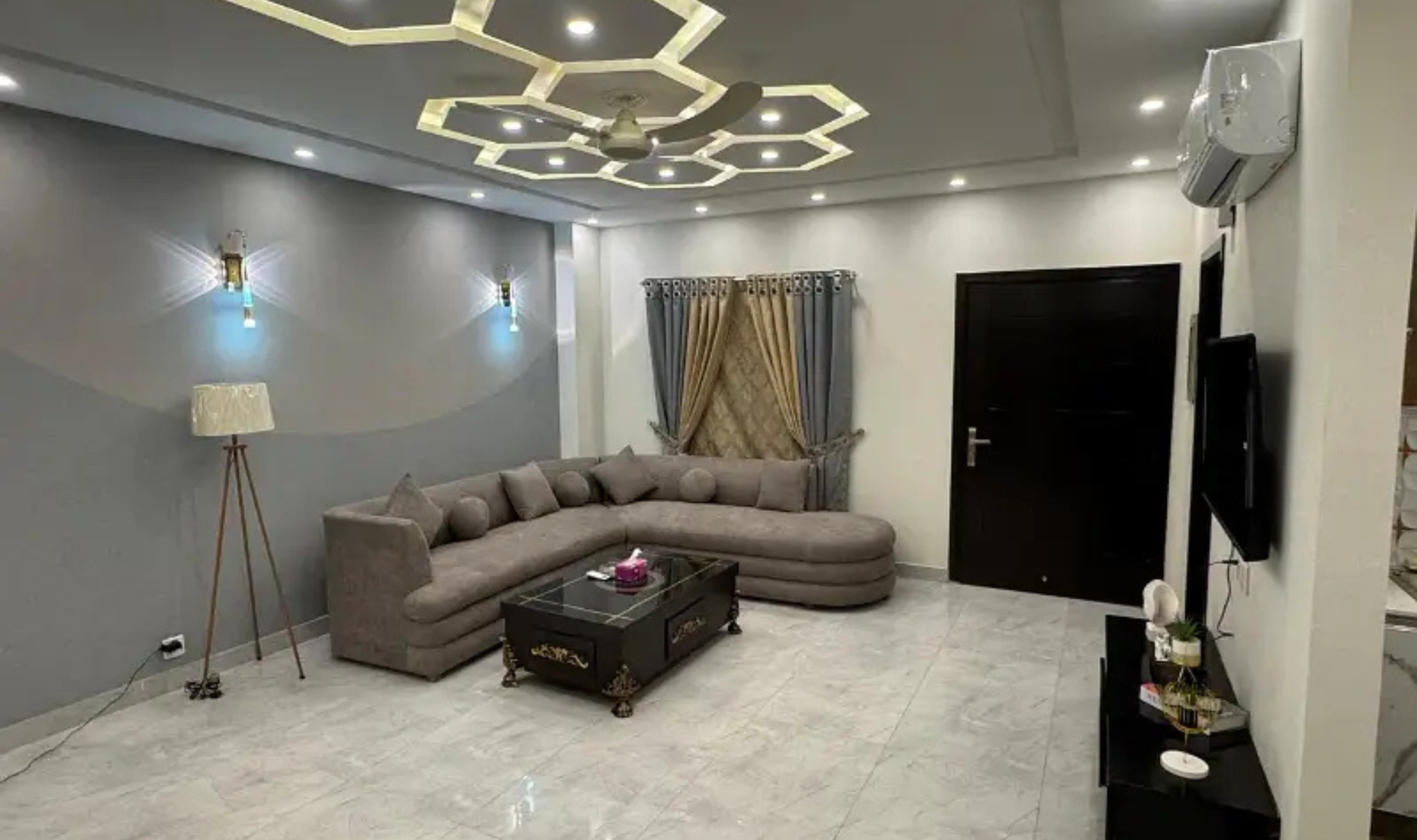 The building provides 24/7 security and high-speed Wi-Fi. The apartment is located close to the market, park, gym, mosque, and is very near to the airport, making it an ideal choice for comfortable and convenient living.