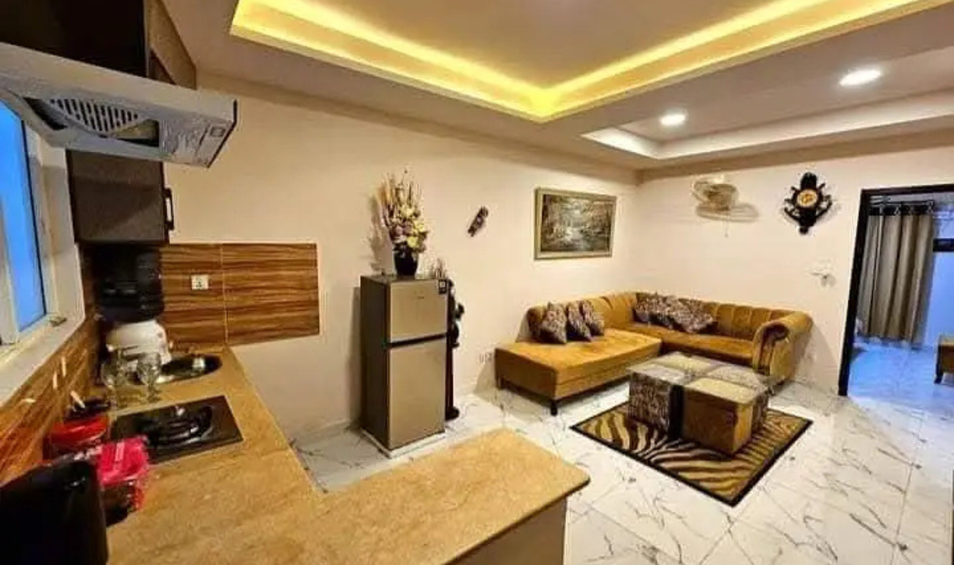 This short-term rental apartment offers comfort and convenience in a safe environment. It comes fully furnished with essential amenities, ideal for families or short stays.