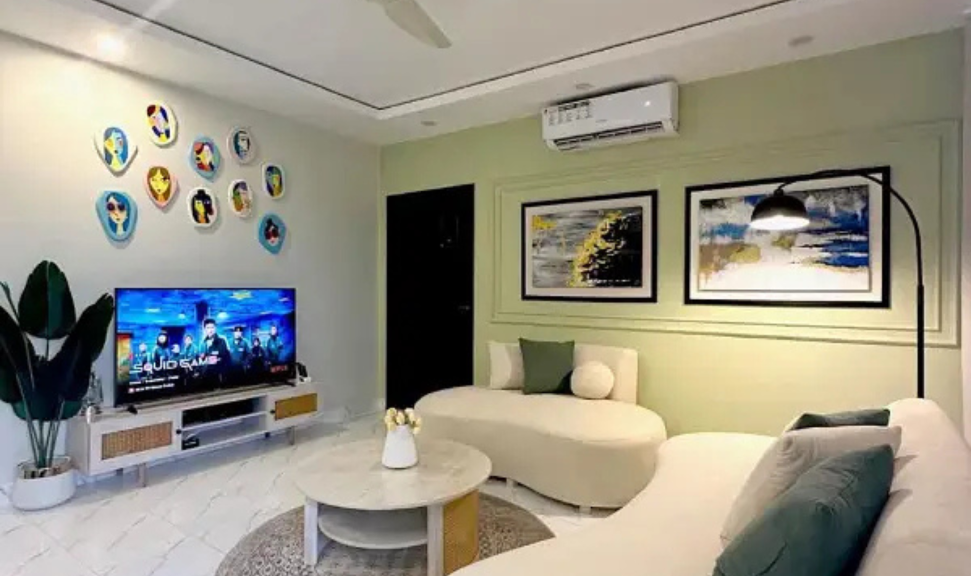 This fully furnished apartment in Bahria Town Phase 8 Rawalpindi is available for short-term stays. The apartment offers a comfortable living space with essential facilities including air conditioning, lift access, water supply, and car parking.