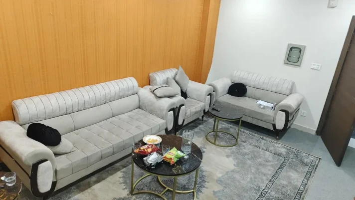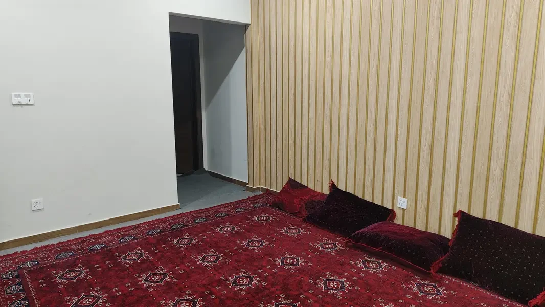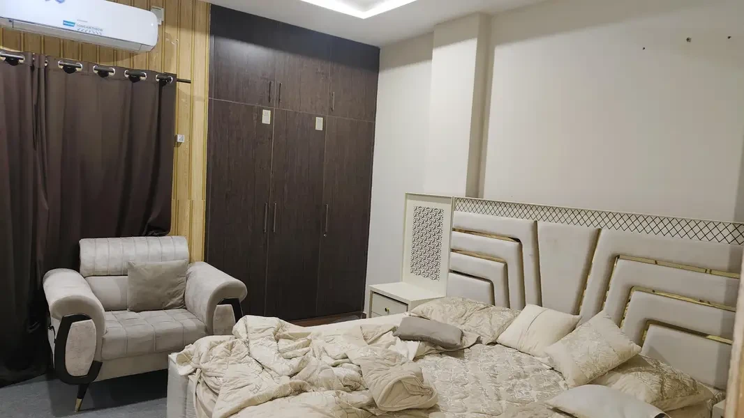 A fully furnished 2-bedroom flat is available for rent in Aries Tower on Main Murree Road, Rawalpindi. Covering 1,200 sq. ft., this flat includes 2 bathrooms, an open kitchen, a TV lounge, drawing and dining rooms, as well as a study and prayer room. Equipped with inverter AC and complete furnishings, it offers a comfortable and convenient living space for families or bachelors.