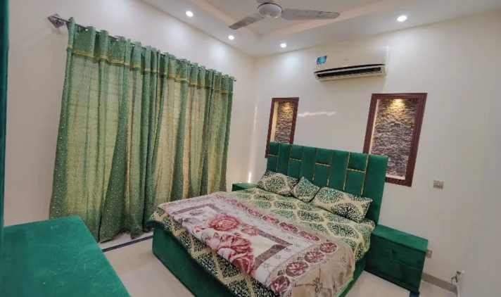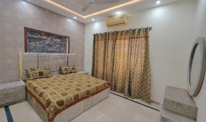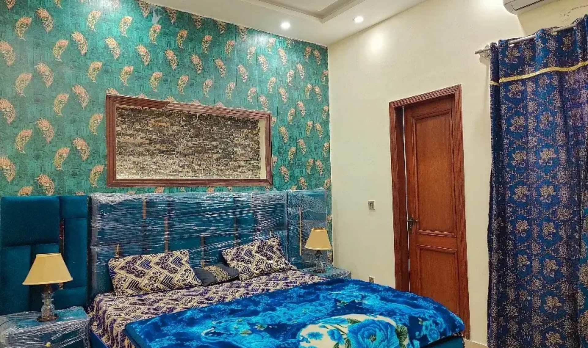 This 5 Marla fully furnished house in Bahria Town Phase 8 - Block M features 3 bedrooms with attached baths, 2 TV lounges, a drawing room, a store, and 1 car parking space. The property is designed for comfortable family living with all essentials included.