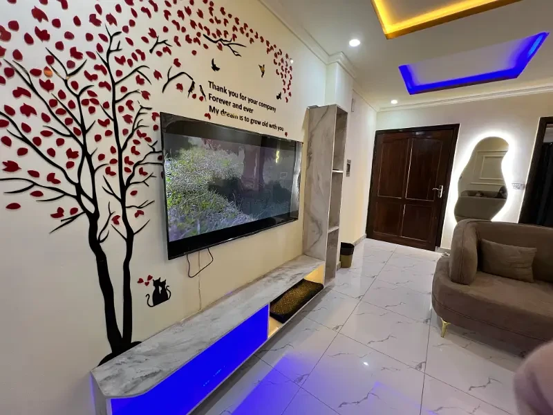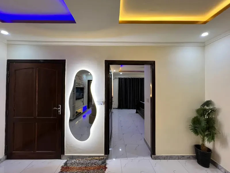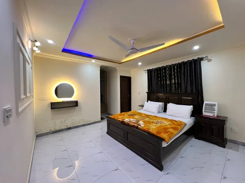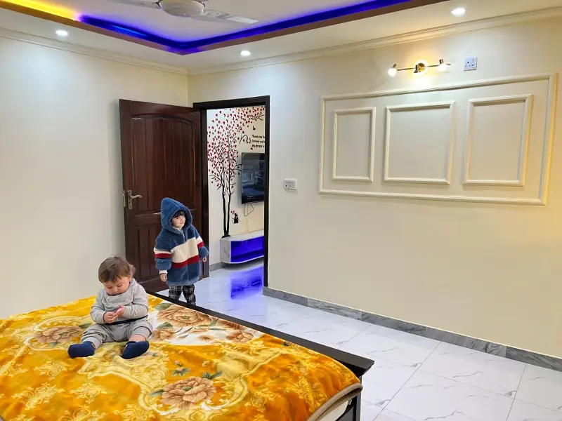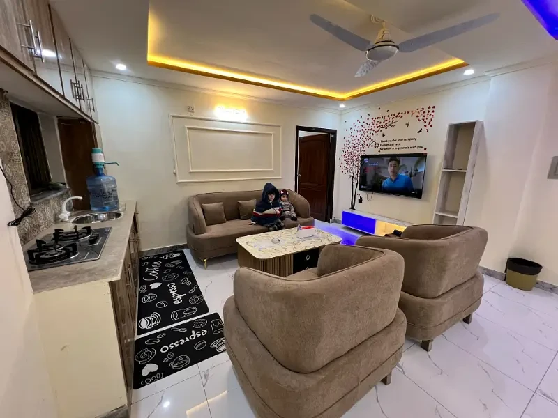 A fully furnished 2-bedroom apartment is available for daily rent in E-11, Islamabad. The apartment includes beds, sofa, dining table, AC/heater, high-speed Wi-Fi, Smart TV (Netflix on request), kitchenette with microwave, fridge, kettle, and basic utensils, along with a clean bathroom with hot water. Fresh linen and towels are provided, and daily or periodic housekeeping is available on request.