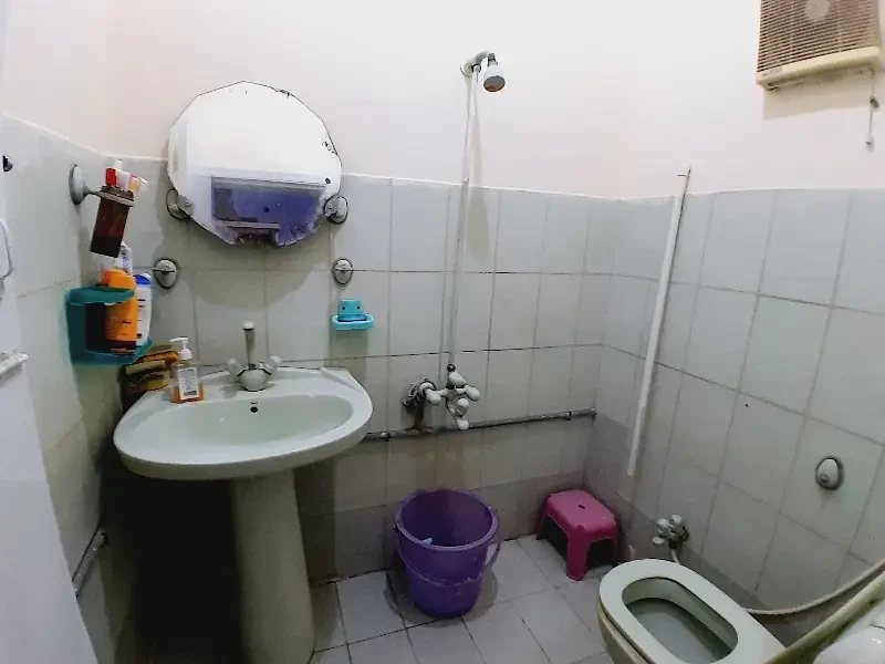 A corner 3-bedroom double drawing flat is available for sale in Gulistan-e-Jauhar Block 14, Karachi. The flat is located on the 5th floor with an area of 1,600 sq. ft and faces the main road. It is part of a secure building with lift, security guards, and all essential utilities including sweet water, gas, and electricity. The property is currently leased, making it a profitable investment.