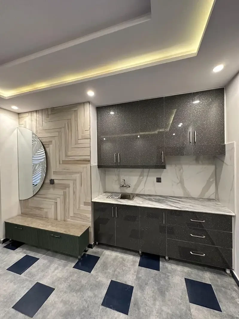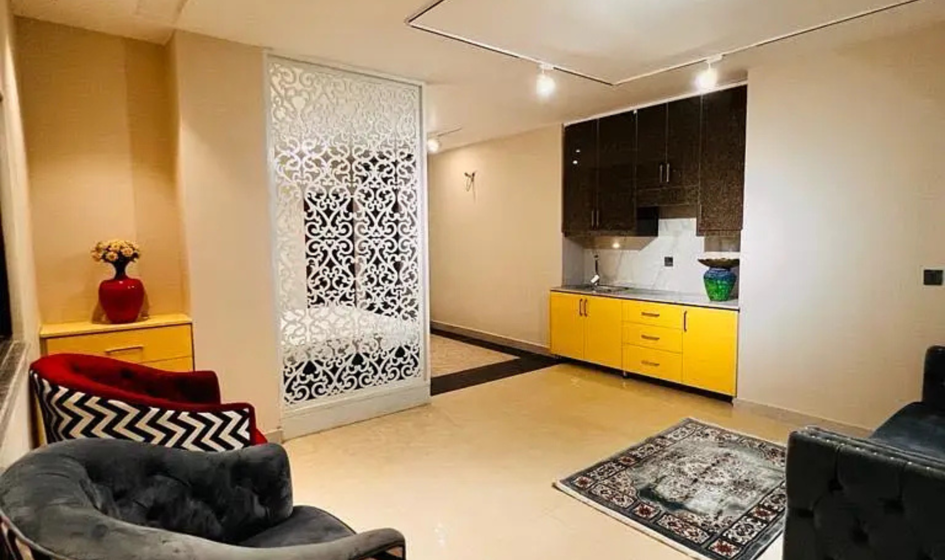 A fully furnished 600 sq. ft. 1-bed apartment is available for sale in Jubilee Town, near Canal Road, Lahore, at a price of Rs 72 Lacs. Located on the 1st floor, this apartment features modern tile flooring, an excellent ceiling design, a beautifully designed interior, one bedroom with an attached washroom, a spacious living area, and a stylish kitchen.
