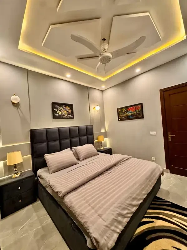 Experience modern city living at its finest with this 2-bedroom fully furnished apartment located in the heart of Gulberg 3, Lahore. Designed for luxury and comfort, this 1,115 sq. ft. apartment features spacious bedrooms, a stylish living and dining area, and a fully equipped kitchen with premium appliances. The apartment also includes three contemporary bathrooms with high-end fittings, central air conditioning, and high-speed internet connectivity, ensuring convenience and comfort in every corner.