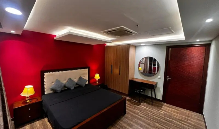 This fully furnished 1-bedroom apartment in Gold Crest Mall & Residency, DHA Phase 4, offers luxurious urban living. Located on the 6th floor, it features modern interiors and comes with a rental income of Rs. 2,10,000/-.
