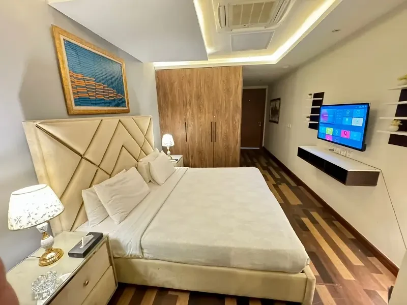 Residents enjoy high-end amenities such as a gym, swimming pool, cinema hall, and meeting room, all within a secure environment. Located on Main Boulevard Gulberg, Lahore, this p